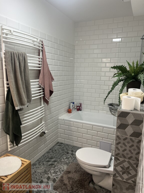 A lakás a legfelső (4.) emeleten található, de nem tetőtéri. A folyosó legvégén helyezkedik el, így nincs előtte átjárás vagy zaj. A bejárat előtt egy kb. 10 m²-es, mások által nem használt terület található, amely akár extra tárolásra is használható. Csak egy oldalon van falszomszédunk, így kimondottan csendes. A ház jól szigetelt, minden ablak háromrétegű üveg. A fűtés házközponti gázfűtés, radiátorokkal, egyedi mérőkkel. A közösköltség 68.000 Ft/hó (átlag, éves szinten), amely tartalmazza a fűtést és a vízdíjat is. Ezen felül csak a villany fizetendő.