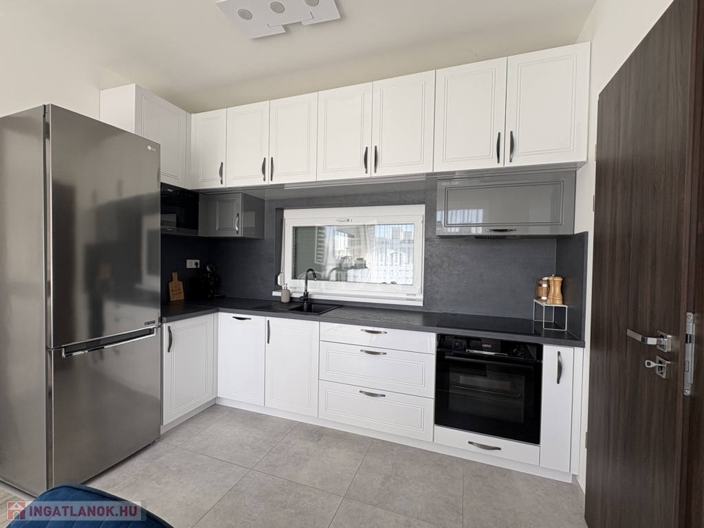 -Tágas nappali amerikai konyhával és étkezővel, déli fekvésű, közvetlen kapcsolattal a teraszhoz