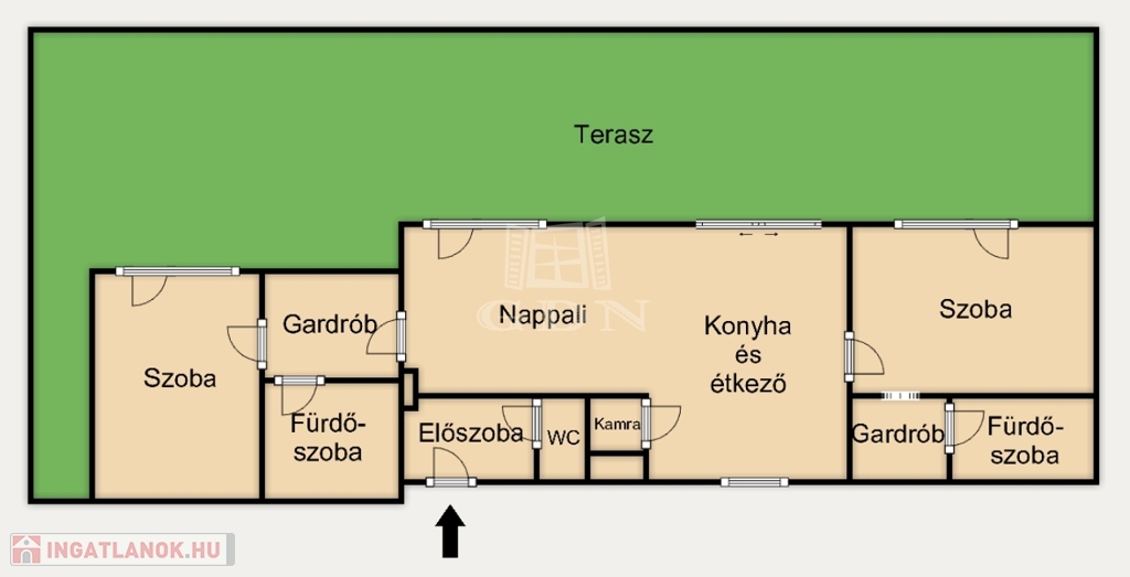 -Mindkét hálóhoz saját gardrób és külön fürdőszoba tartozik (egyik káddal, másik zuhanyzóval), valamint közvetlen teraszkijárattal