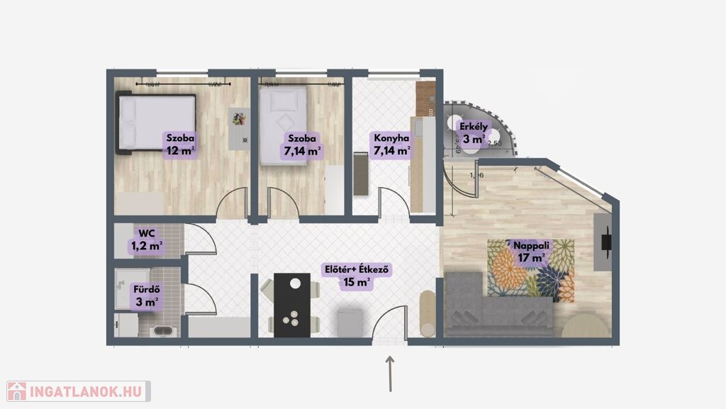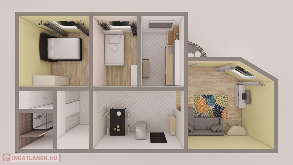 A praktikusan kialakított lakás családok számára, valamint kiadásra is megfelelő, külön bejáratos szobái miatt tanulóknak is ideális választás.