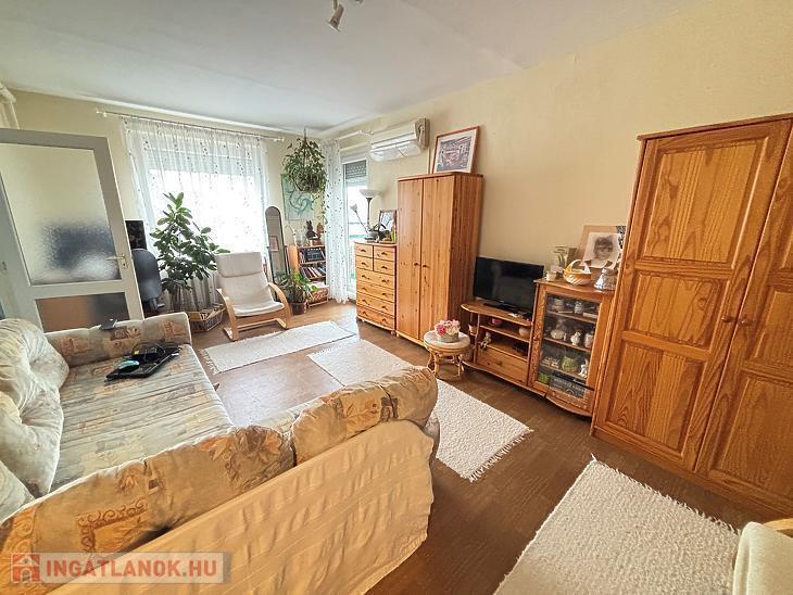 Az ingatlan közepes állapotú, a nyílászárók műanyag thermo üvegesek, redőnyösek, a szoba fa parkettás, a konyha linóleumos, a fürdő pedig járólapos. 2019.-ben a fürdőszobát felújították, új vízcsöveket, kádat, burkolatot és szanitereket kapott.