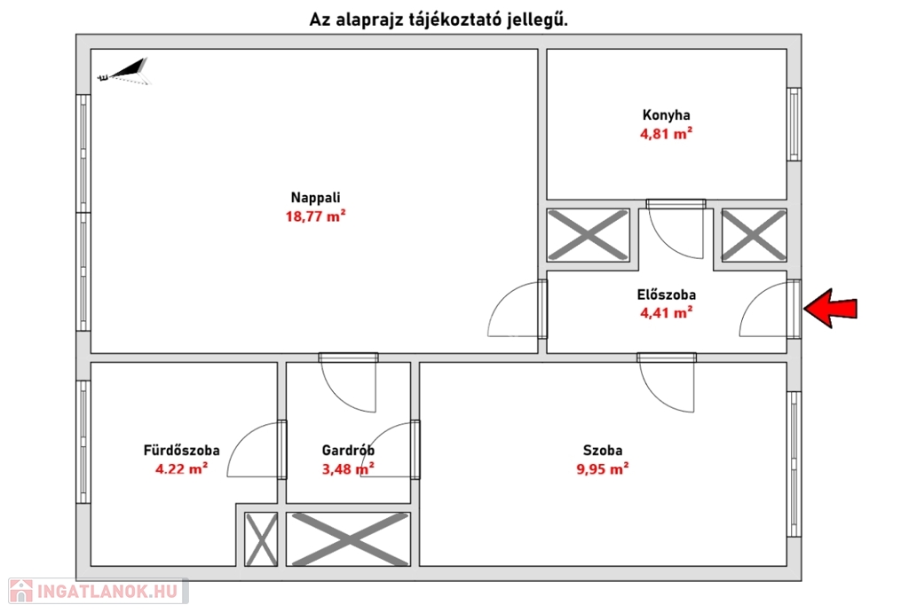 A lakáshoz tartozik egy kizárólagos használatú, kb 2 nm-es tároló is.