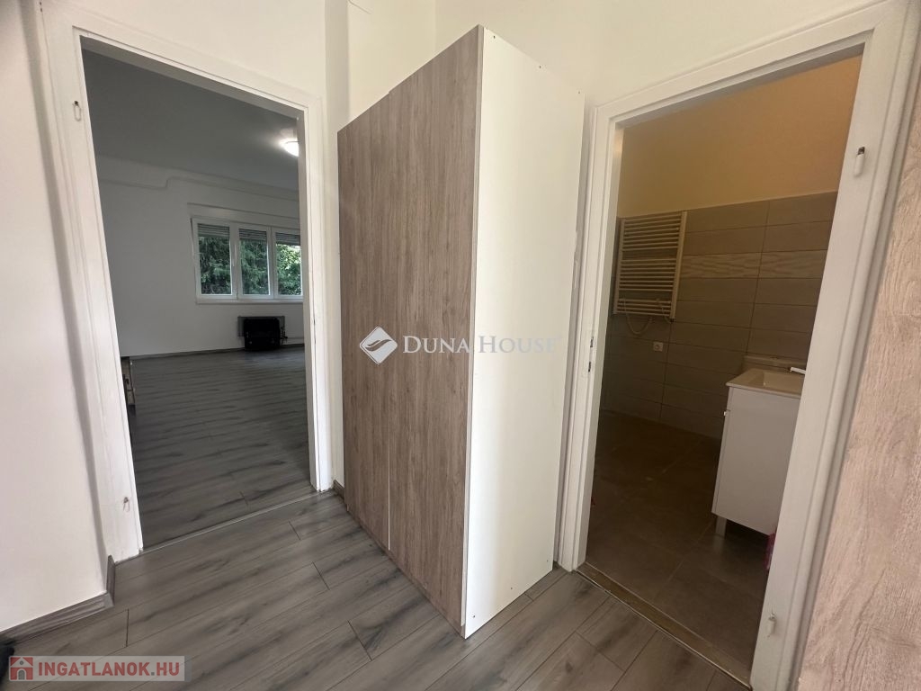 Frissen felújított lakás eladó Újpest kertvárosban, kocsi beállóval*****Az ingatlan 49 négyzetméter, jelenleg 1 szobás , de átalakítható másfél szobás ingatlanná is!Idén lett felújítva: burkolatok, fürdőszoba, konyha, festés.A nyílászárók új műanyag nyílászárók.A lakás egy felújított, szigetelt 2 szintes társasház magas földszintjén található, kényelmesen megközelíthető. A társasháznak van közös kertje. A pincében tároló is van a lakáshoz, és a kertben egy autó beálló.A közlekedés jó, Újpest központ 1 km-re megtalálható. Buszok a környéken: 20E, 220.A környék kertvárosias, zöld, kellemes környezet.