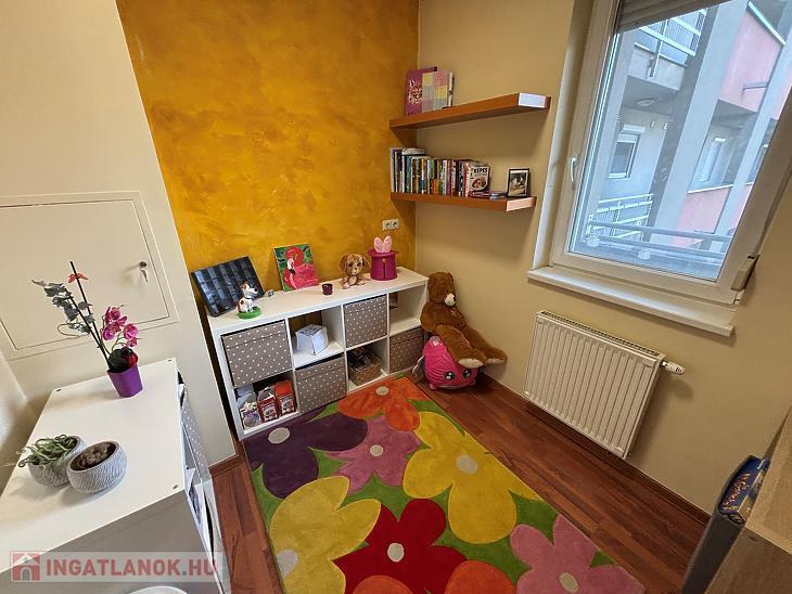 Az ingatlan jó állapotú, a szobák laminált parkettásak, a többi helyiség járólapos, a nyílászárók műanyag thermo üvegesek, redőnyösek. A konyhabútort, a fürdőszoba burkolatait és a beépített szekrényt kicserélték.