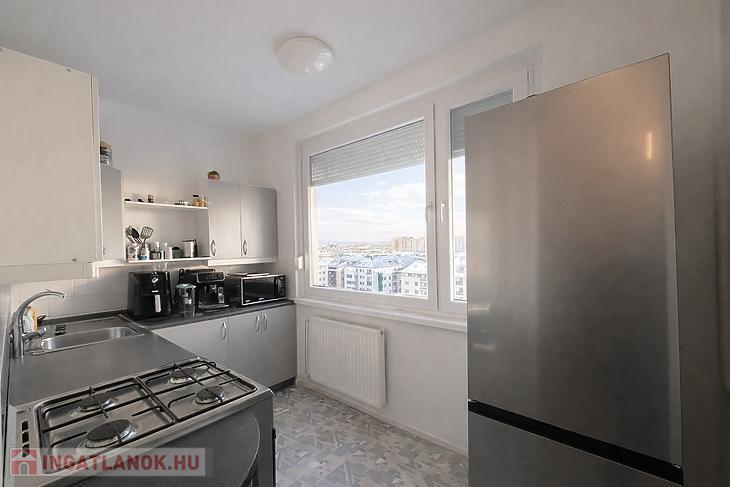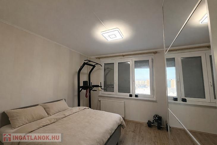 A lakásba több ponton záródó, biztonsági bejárati ajtót, modern beltéri ajtókat, valamint redőnnyel és szúnyoghálóval felszerelt, műanyag keretes, thermo üveges nyílászárókat építettek be. A szobákban laminált padlót helyeztek le, a többi helyiséget járólappal burkolták. A fűtőtesteket korszerűsítése is megtörtént, ezeket egyedi hőmennyiségmérővel látták el. Az elszámolás fogyasztás alapján is történhet, a jelenlegi átalánydíj 7.473.- Ft. Konyhája nagy ablakos, világos, a konyhabútor és a két gardróbszekrény a vételár részét képezi.
