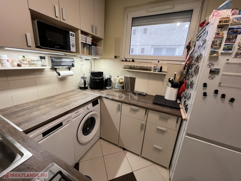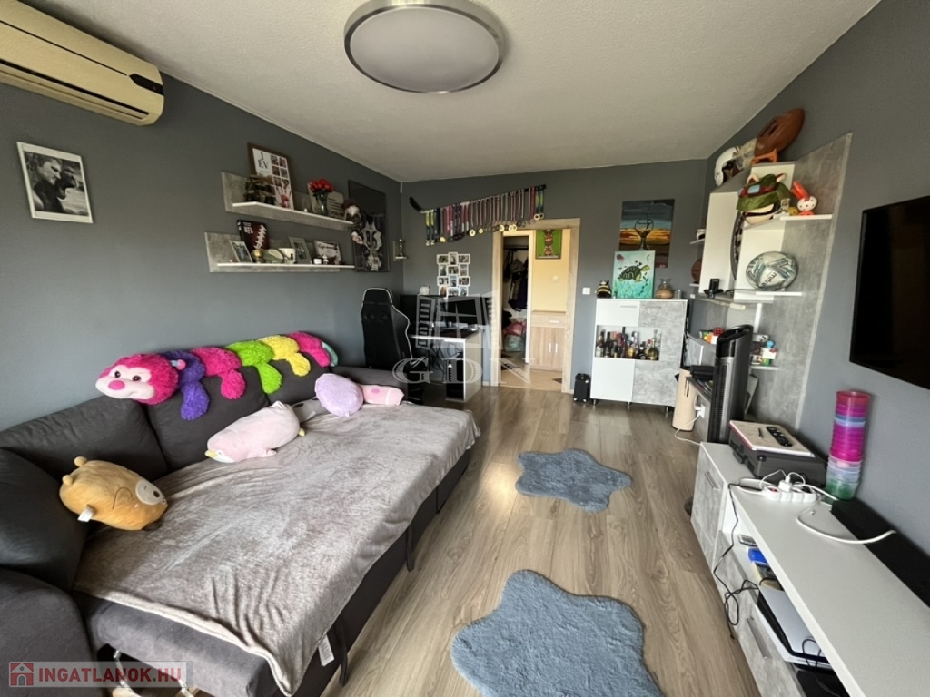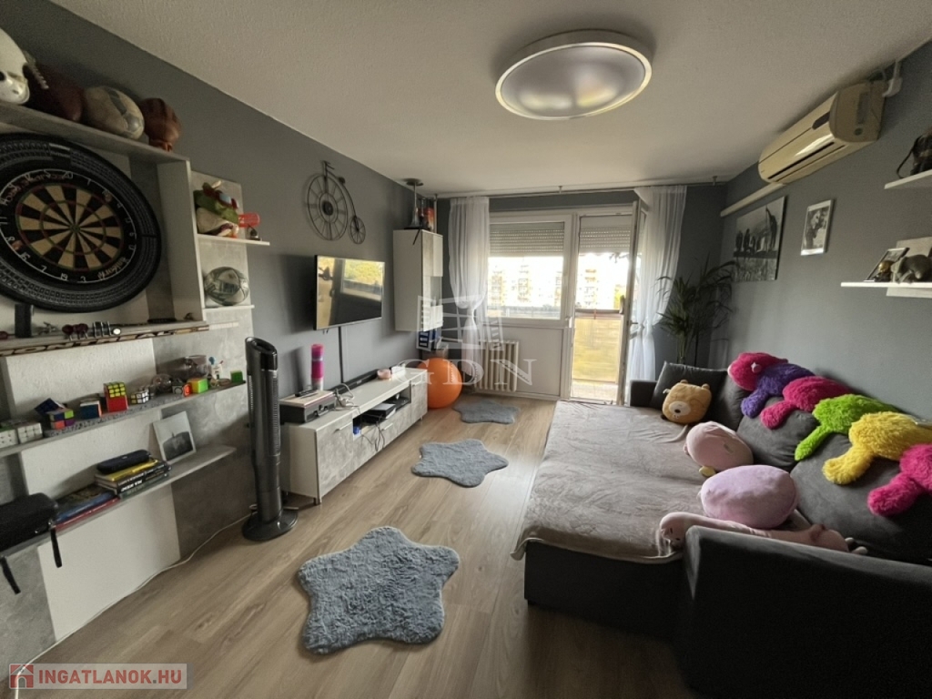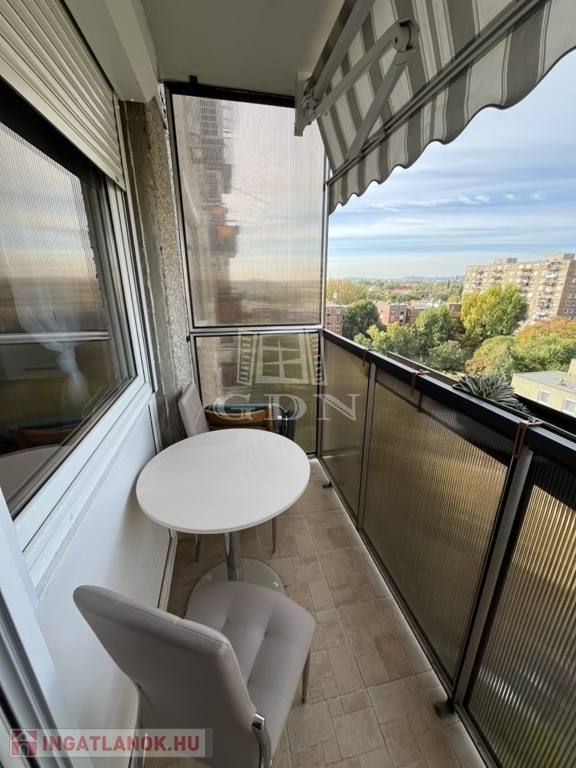 Eladó Újpesten, egy 54 nm-es, 2 szobás, erkélyes lakás, 10 emeletes társasház 8. emeletén, klímával, gardróbhelyiséggel és friss, igényes felújítással.