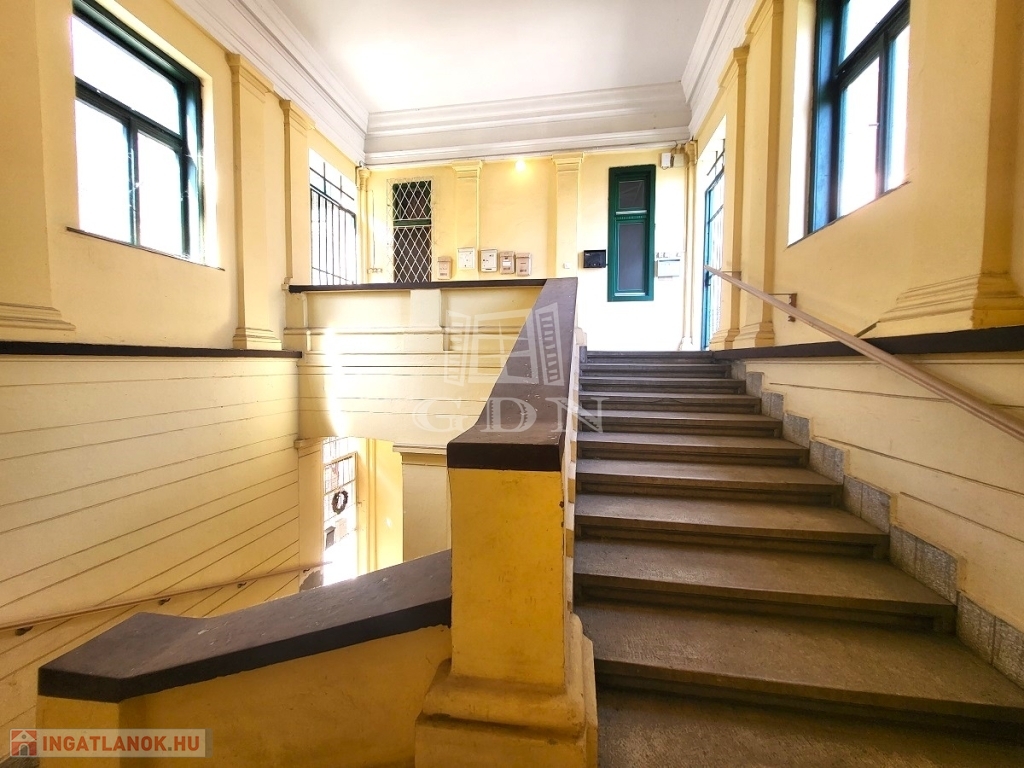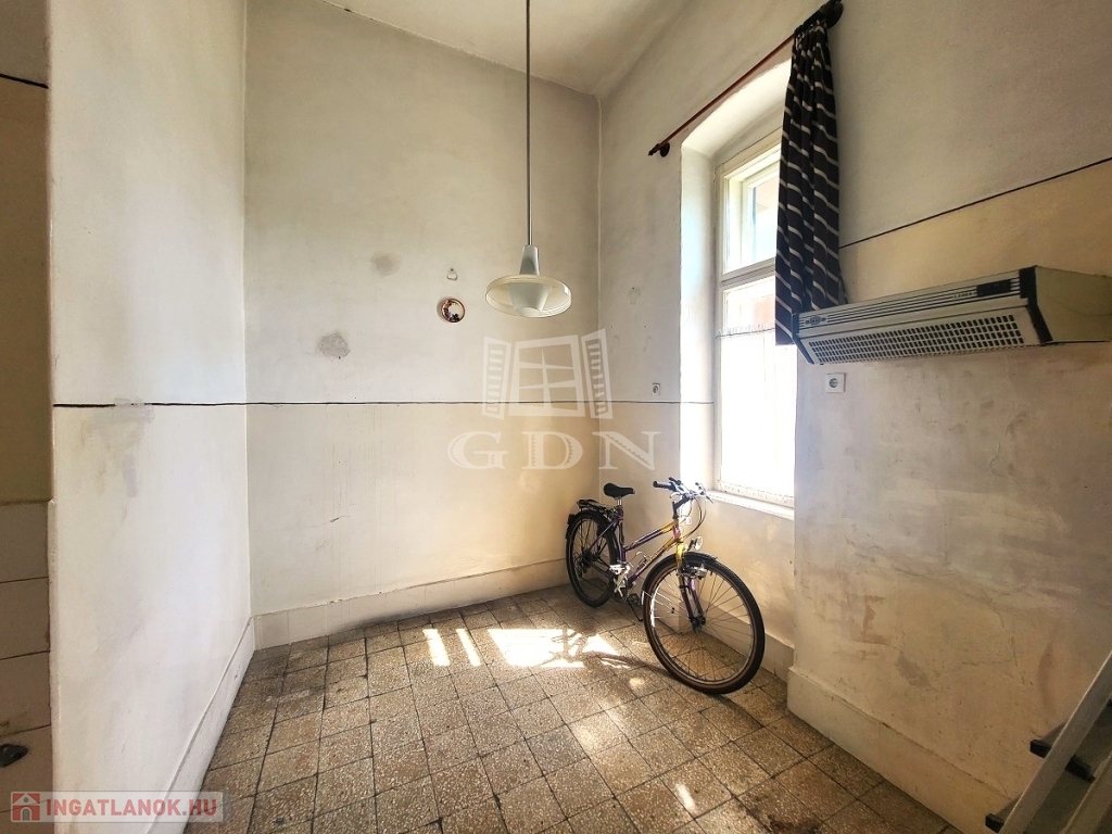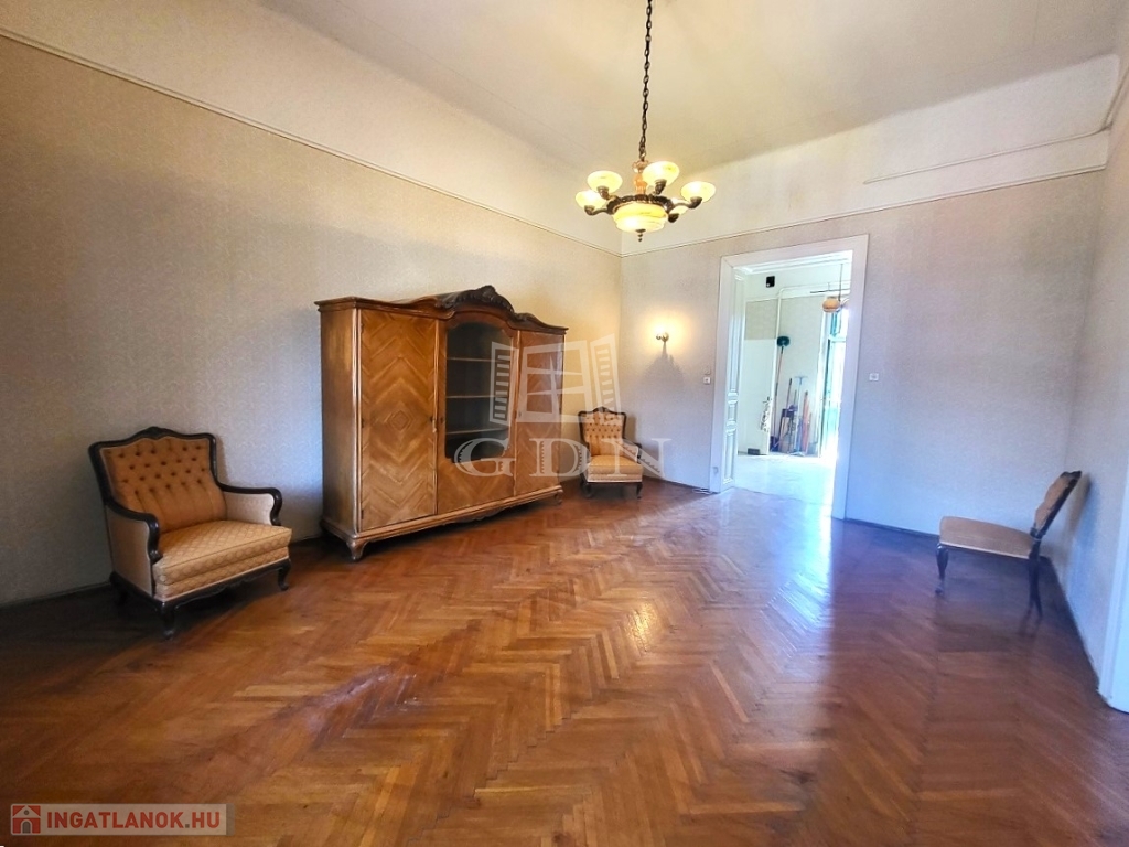 A szobák világosak, tágasak, burkolatuk eredeti faparketta az ablakok utcára néznek.