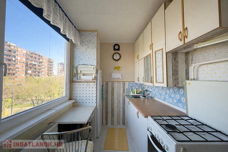 Újpest-központ közelében, csendes, parkos környezetben, liftes társasház III. emeletén kínálunk megvételre egy 60 nm-es, 2+1 félszoba + hallos elosztású, kétfekvéses, erkélyes panellakást, beköltözhető állapotban.