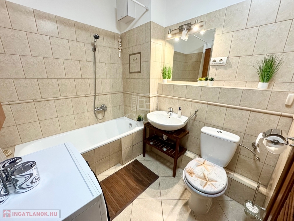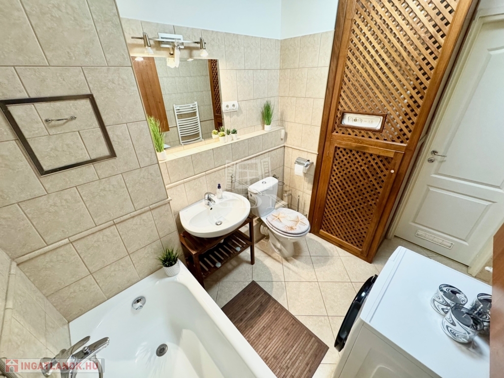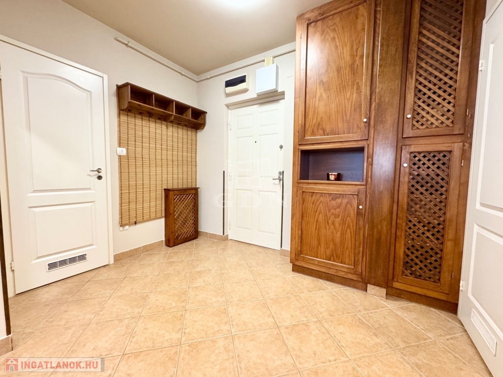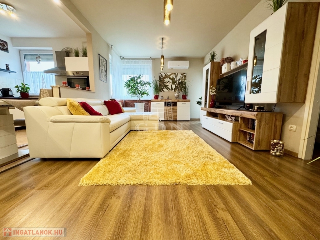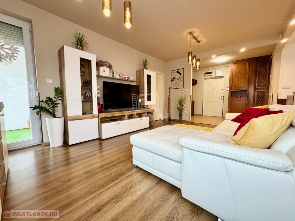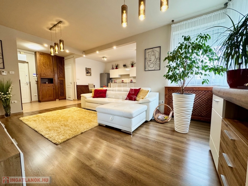 IV. kerületben, kertvárosi környezetben, kitűnő közlekedés és ellátottság mellett, csendes utcában, Szilaspatak lakóparkban, 2002-ben, magas műszaki színvonalon épült, 3.szintes, exkluzív megjelenésű társasházban, 2. emeleti, kiváló elosztású, 57 nm-es, 2 szobás, amerikai konyhás, napos-világos K-NY-i fekvésű, kombinált gázcirkó fűtésű, alacsony fenntartású, közös költség felújítási alappal 13.800 Ft, egyedi mérésű, újszerű állapotú, klimatizált lakás, beépített gépesített konyhával, külön pénzügyi megállapodás mellett akár a teljes bútorzattal, kulturált lakóközösségű házban eladó.