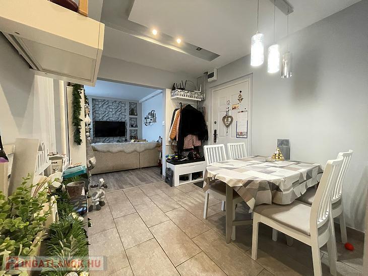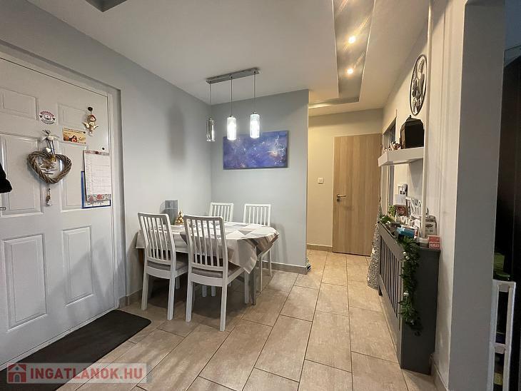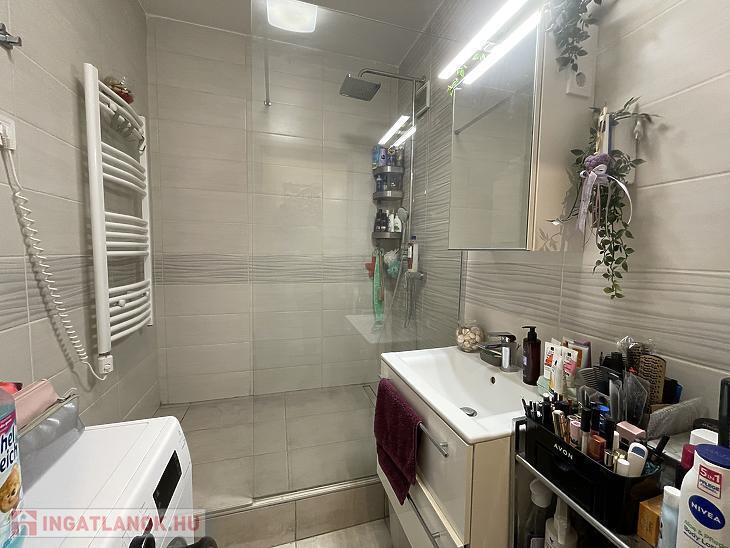 Az ingatlant 2019.-ben teljeskörűen felújították. A villany-vezetékeket áthúzták, a nyílászárók műanyag thermo üvegesek, redőnyösek, szúnyoghálósok. A szobák laminált parkettások, a többi helyiség járólapos, a radiátorokat, a belső ajtókat és a beépített szekrényt kicserélték. A konyhabútort modernizálták, kibővítették és gépesítették. A fürdőszobában épített zuhanyzót alakítottak ki, új szanitereket és törölköző szárítót szereltek be. A nappali és a hall SPOT lámpás világítást kapott, a bejárati ajtó több ponton záródó biztonsági. A beépített bútorzat a vételár részét képezik. Tehermentes! A lakáshoz tartozik egy közös, 40nm-es tároló is.