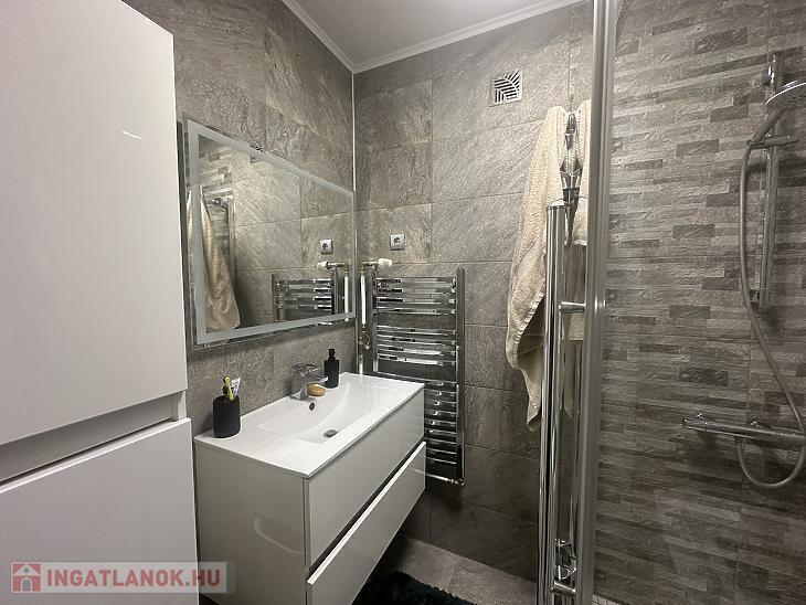 A lakás 3 évvel ezelőtt teljeskörű felújításon esett át, melynek keretein belül megtörtént a teljes víz és villanyhálózat korszerűsítése. Több ponton záródó biztonsági bejárati ajtót, modern beltéri ajtókat és sötétítővel felszerelt műanyag keretes, thermo üveges nyílászárókat építettek be. A szobákban laminált padlót helyeztek le, a többi helyiséget járólappal burkolták. A fűtőtestek cseréje is megtörtént, új lapradiátorokat szereltek fel. A nappaliba a nagyobb komfortérzet kialakításának érdekében egy hűtő-fűtő inverteres légkondicionáló berendezést is felszerelésre került. Konyhája ablakos, világos, a konyhabútor a vételár részét képezi. A vételár továbbá tartalmazza a lakás teljes bútorzatát, gépesítéssel együtt.