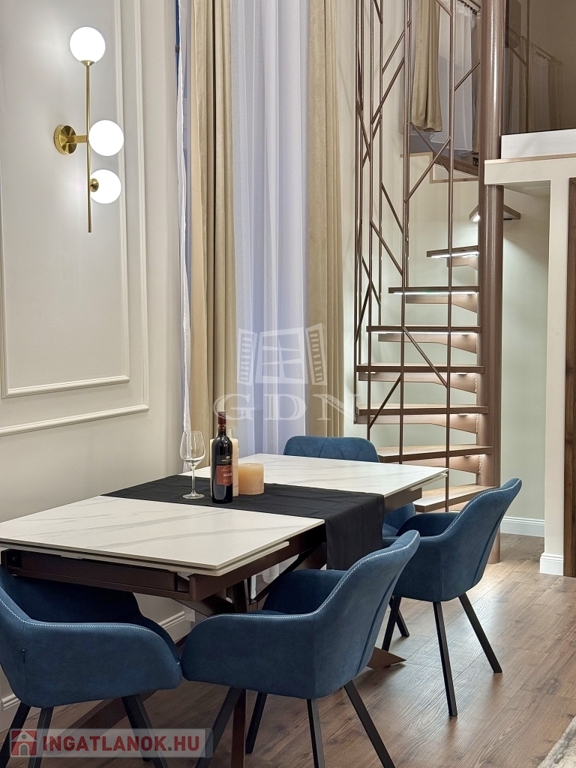 Eladásra kínálok a 9. kerület egyik legdinamikusabban fejlődő részén, a Kálvin tér közvetlen közelében, az Üllői úton, egy frissen, luxusminőségben felújított, 1. emeleti, 56 m²-es álomlakást, amelyhez egy 20 m²-es, teljes értékű állógaléria is tartozik.