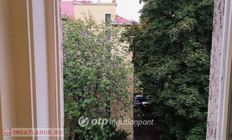Konyhából nyíló 1,5 m2-es erkély zöld, fás belső udvarra néz