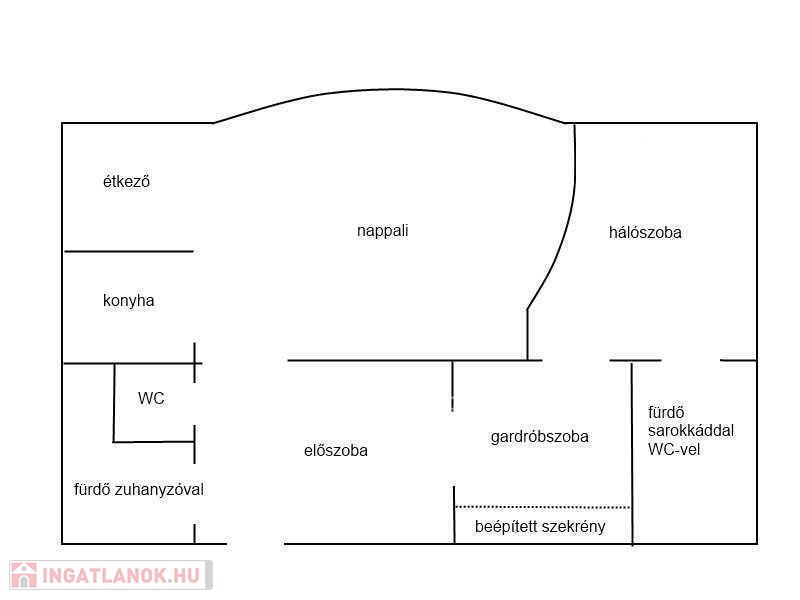 Az előszobából nyílik egy kisebb, zuhanyzós fürdőszoba, mellette külön helyiségben található a WC.