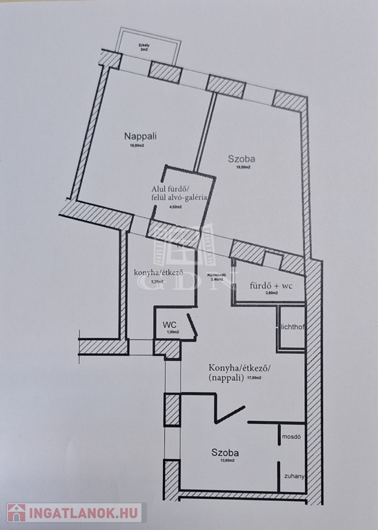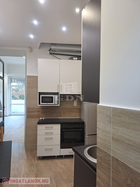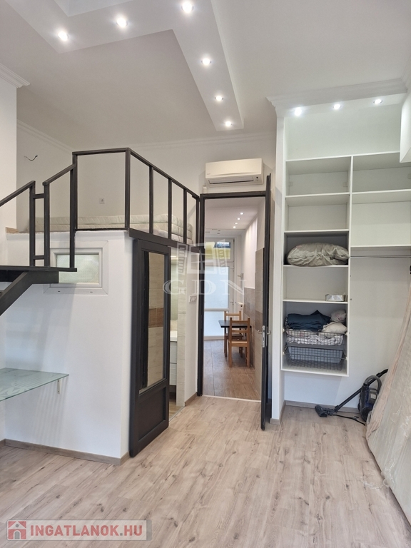 A 33 m²-es garzon galériázott, erkélyes, gépesített konyhával – tökéletes kis városi kuckó.