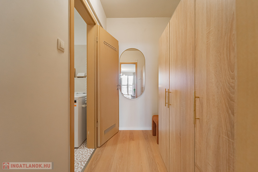 Tulajdonostól eladó egy teljes körűen 2025-ben felújított, kulcsrakész, azonnal költözhető 60 m²-es, 2 szobás lakás, hatalmas 14,5 m²-es terasszal. Modern design, új, minőségi anyagok, bútorozott állapot – ritka lehetőség a piacon!