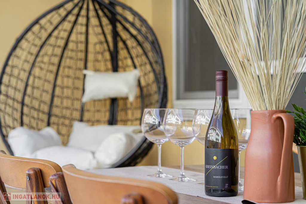 • 60 m² + 14,5 m² loggia (minden oldalról fedett terasz)