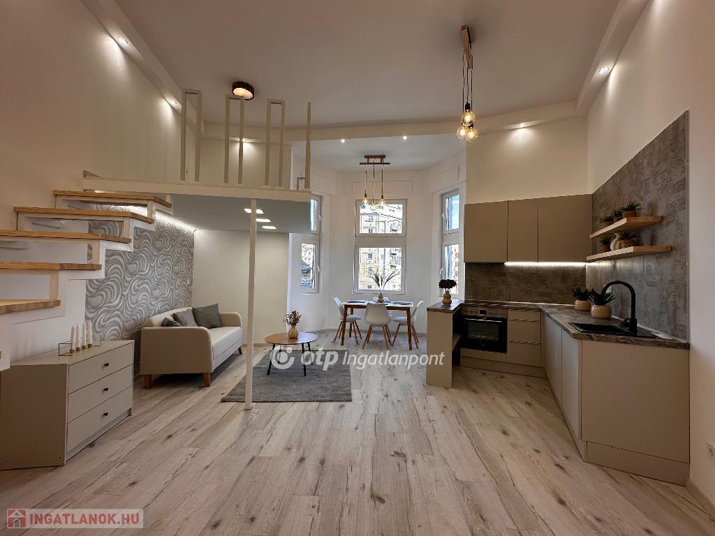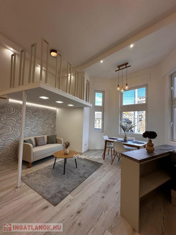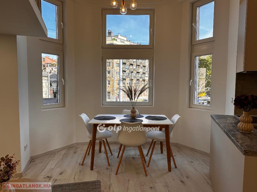 IX. kerület, Haller parknál ELADÓ 108 m2, I. emeleti lakás, melyben 3 db egyedi, különálló, berendezett, gépesített garzonlakás került kialakításra. Ez a lakás tökéletes választás befektetésnek. Az épület külső homlokzata és a pince is felújítása már megtörtént, a közös területeken pedig a villany-, víz- és gázhálózat is megújult. A lift és a belső udvar tovább növeli a lakók kényelmét. A 3 lakrész ügyvédi megosztással rendelkezik. A lakások felszereltsége: - Konyhabútor, kanapé, asztal, étkező és franciaágy, - Teljes gépesítés (Ariston Wellis Evo boylerrel), - Hűtő-fűtő klíma, - Norvég fűtőpanel. A három kialakított lakás: 1-es számú lakás: 35 m2, plusz 3 m2 erkély és 5 m2 galéria, 2-es számú lakás: 38 m2, plusz 5 m2 saját, zárható pincetároló és 5 m2 galéria, 3-as számú lakás: 35 m2 alapterület, plusz 5 m2 galéria, ez külön bejárattal rendelkezik.