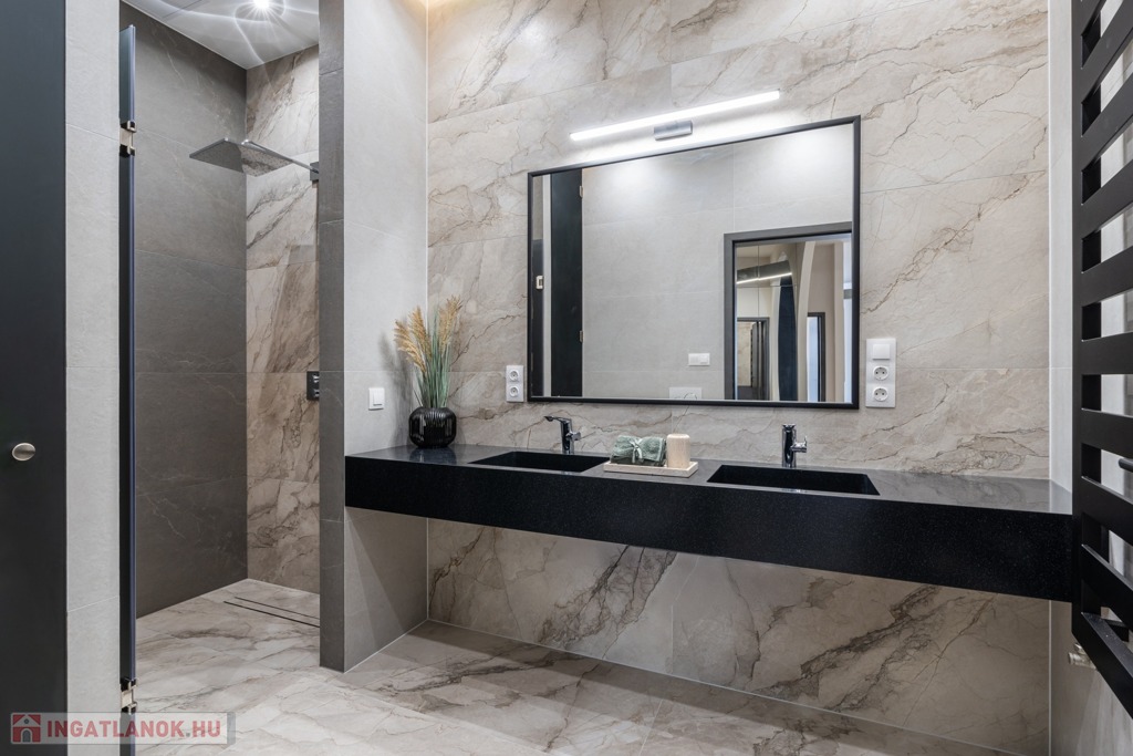 2 külön nyíló hálószoba, 2 teljes értékű fürdőszoba (egyik zuhanyzós, másik kádas, mindkettőben WC)