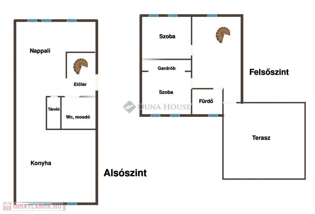 Az amerikai konyhás nappaliból egy kényelmes és dizájnos lépcső vezett a felső szintre, ahol két hálószoba, gardróbbal és fürdővel várja az új tulajdonost. A tetőterasz nem csak pihenésre, vendégek fogadására, de akár kénylemes otthoni munkára is alkamas.
