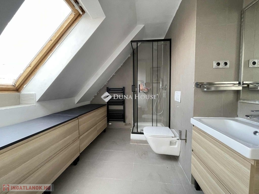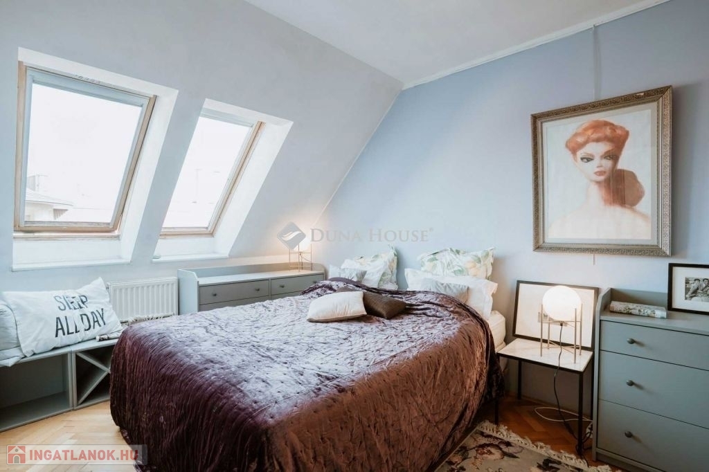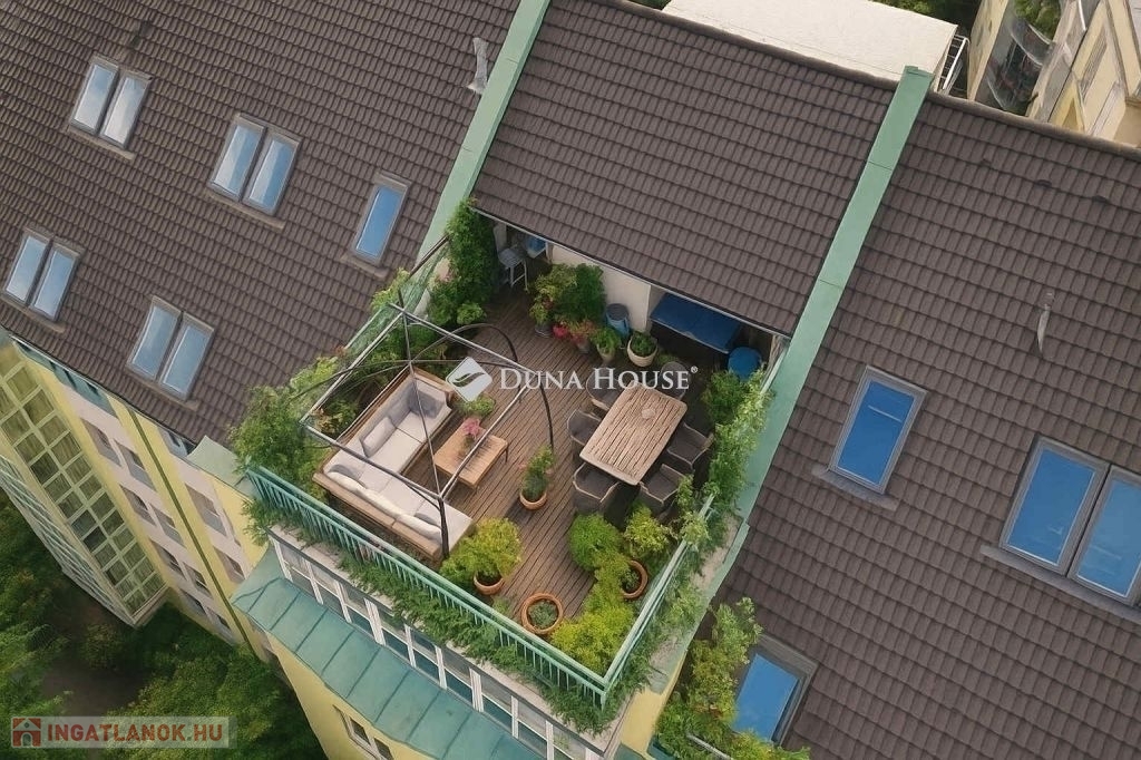 2000-es években épült hatemeletes társasházban található ez a belső kétszintes, napfényes lakás. Az ingatlan különlegessége a tetőterasznak köszönhető egyedülálló panoráma. A lenyűgöző kilátás mellett egy tágas és világos nappali biztosítja a családi és baráti összejövetelekhez a tökéletes helyszínt.