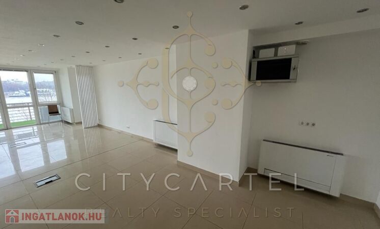 Közvetlenül a Duna-parton a Lechner Ödön sétányon PANORÁMÁS, KLIMATIZÁLT 115 nm-es, remek elosztású nappali + hálós (+ 1 háló kialakítható), TÁGAS TEREKKEL rendelkező LUXUS lakás, portaszolgálatos, LIFTES társasház 3. emeletén ELADÓ!