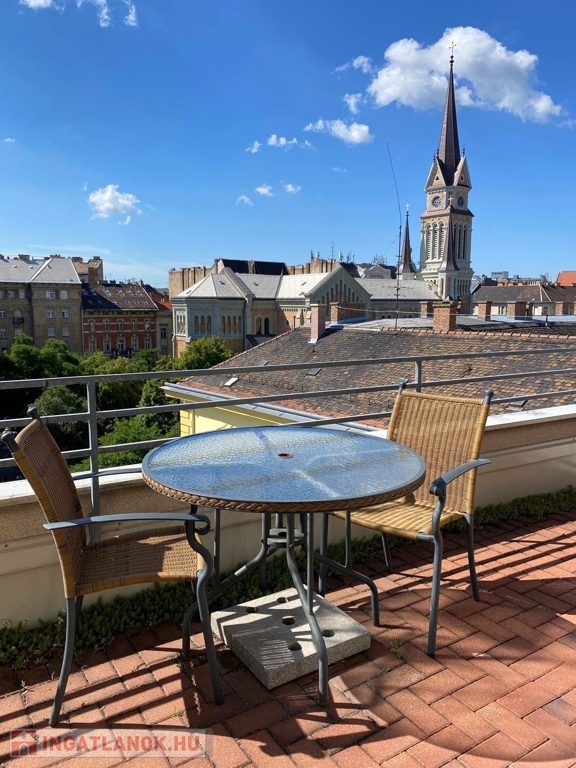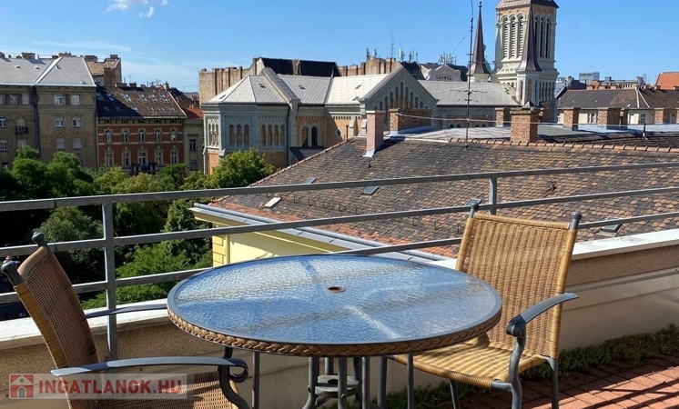 For sale: a one-of-a-kind, 6th-floor, 3-room apartment with exceptional features in the most sought-after part of the 9th District, right next to the newly renovated Bakáts Square. This property is a true rarity in the downtown market: situated above the surrounding houses, it offers total privacy and intimacy without being overlooked by neighbors.