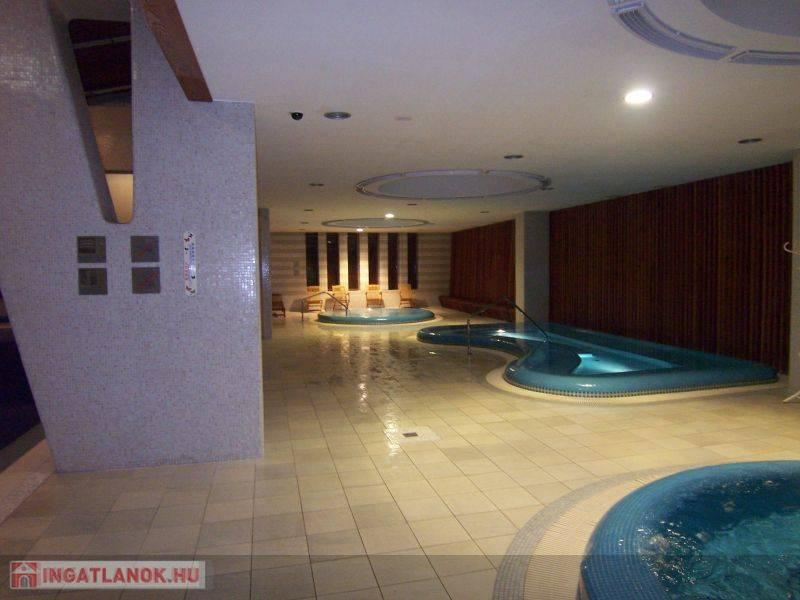There is a large indoor swimming pool, kid's pool, thermal water pool, jacuzzi, sauna, squash courts, well-equipped gym, coach and masseur at no extra charge for the elite residents of the building.