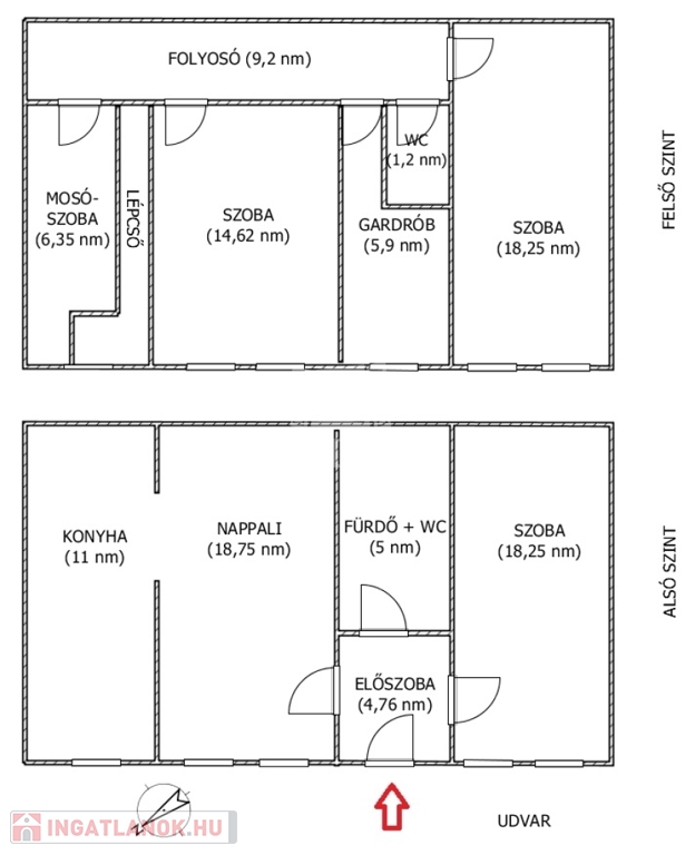 -Belmagasság: 5,2 m, tágas, levegős térérzet - alsó szint: 2,55 m, felső szint: 2,18 m.