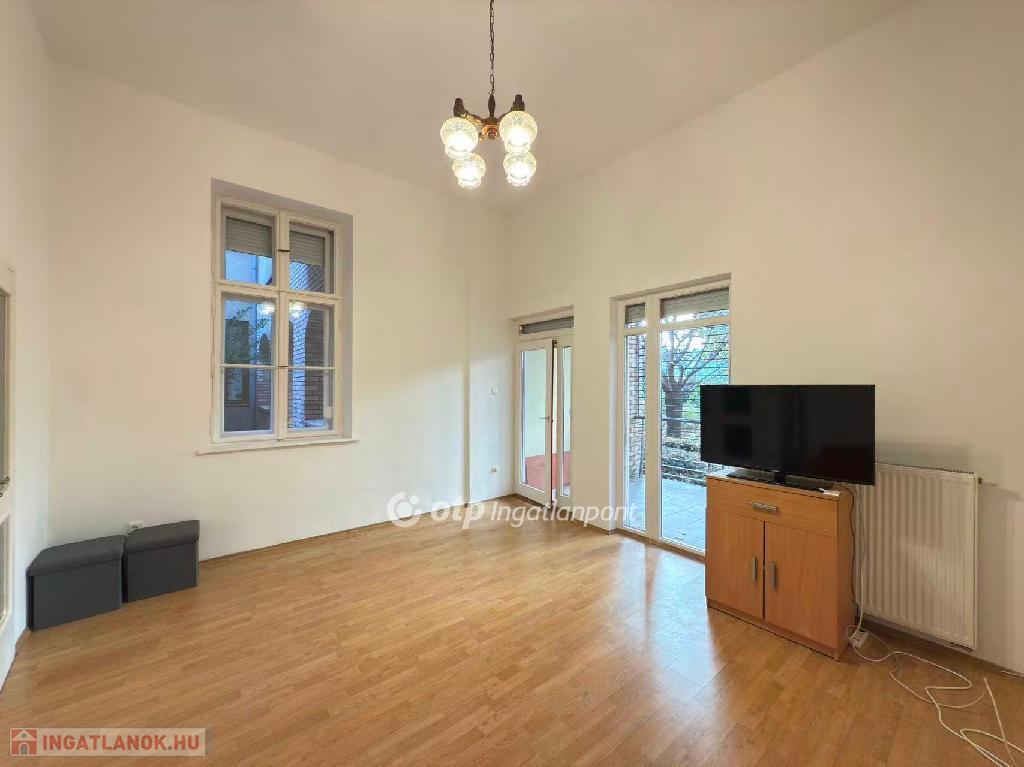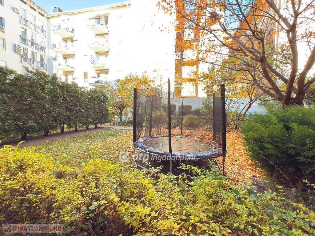 A lakás magasföldszinti elhelyezkedésű, belső kertre néz, így csendes és zöldövezeti hangulatot kínál a város szívében.