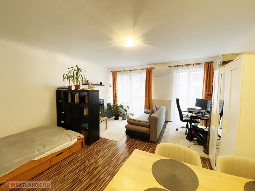 A lakás jelenlegi kialakítása tágas amerikai konyhás nappali, azonban a két ablaknak köszönhetően könnyedén 1+1 félszobássá alakítható, így saját otthonnak és befektetésnek is kiváló választás.