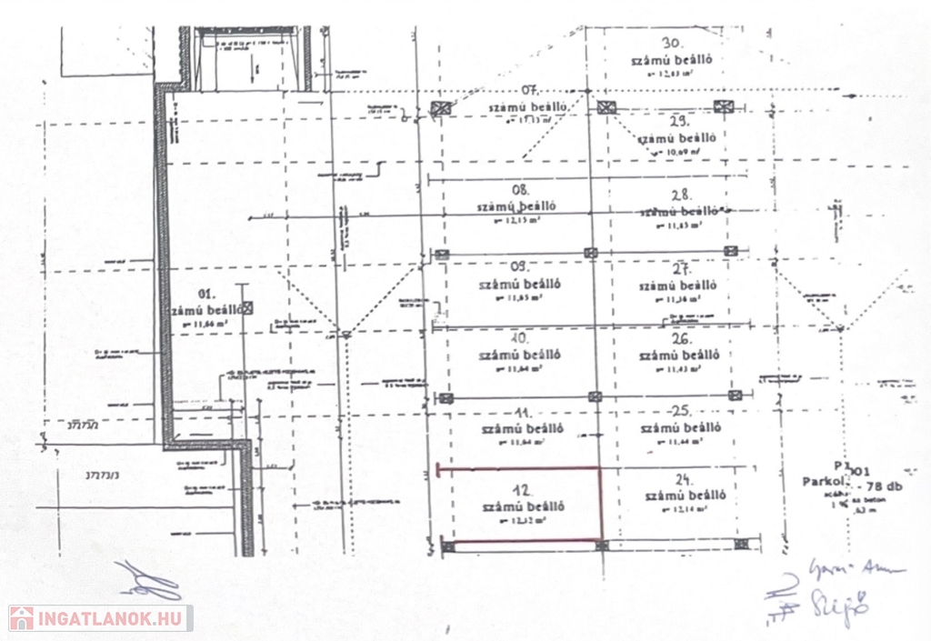 Az ingatlanhoz tartozik egy 12 m²-es gépkocsi-beálló a -2. szinten lévő teremgarázsban, elektromos kapun keresztüli bejárással. A beálló külön helyrajzi számon van, igény szerin megvásárolható, melynek ára 10.040.000,- Ft.