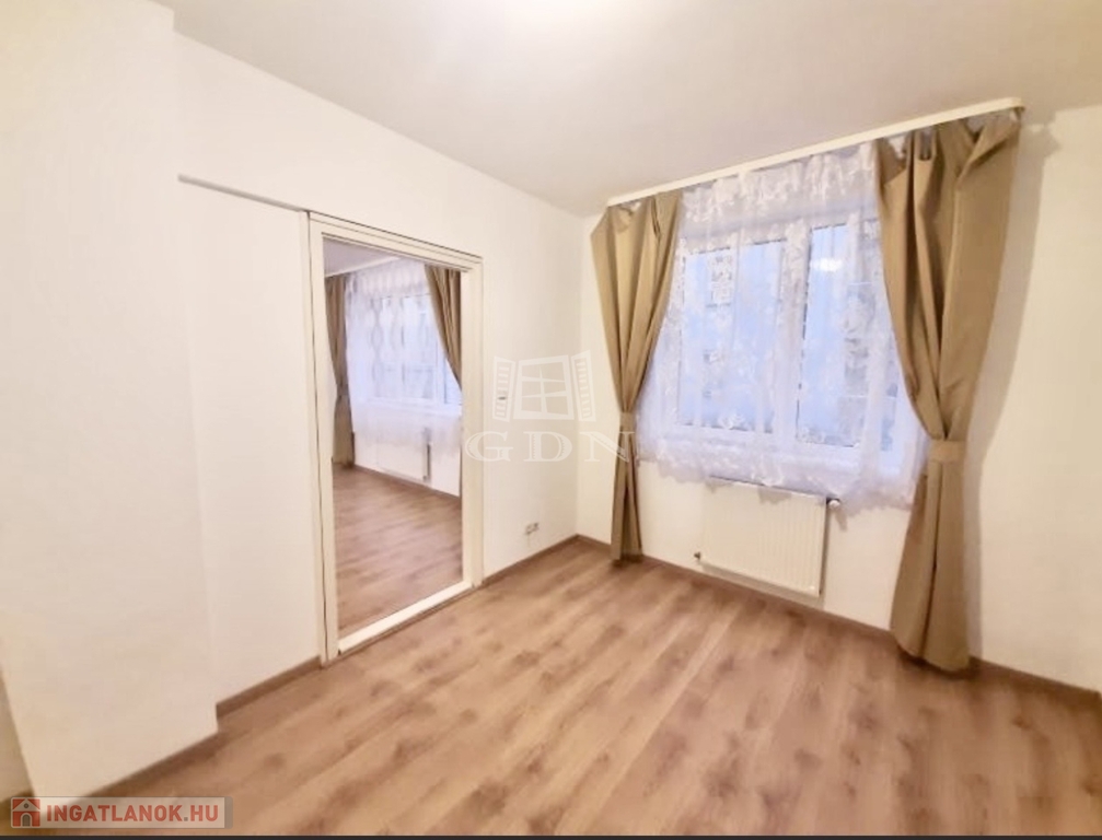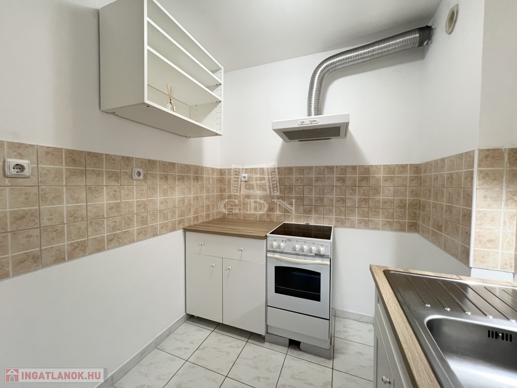 A konyhában konyhabútor és elektromos tűzhely található; az előszobában pedig újszerű, fogasokkal és fiókos elemmel ellátott szekrény kapott helyet. A bútorok, a függönyök és a tűzhely a vételár részét képezik, de kérésre a lakás kiürítve kerül átadásra.
