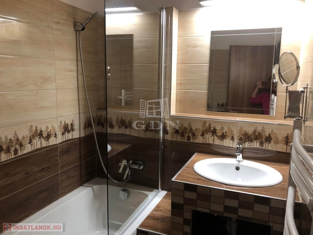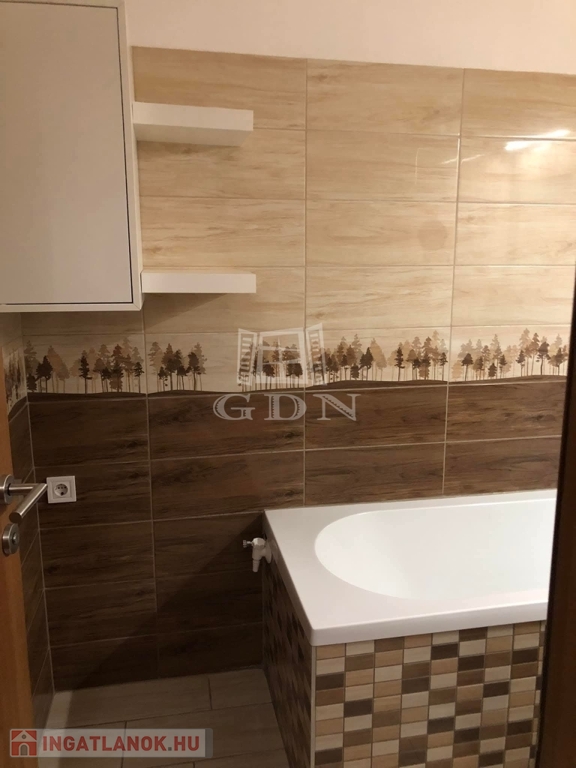 A víz- és villanyvezetékek cseréje megtörtént, a fürdőszoba panelkivágással bővített és modern kialakítású.