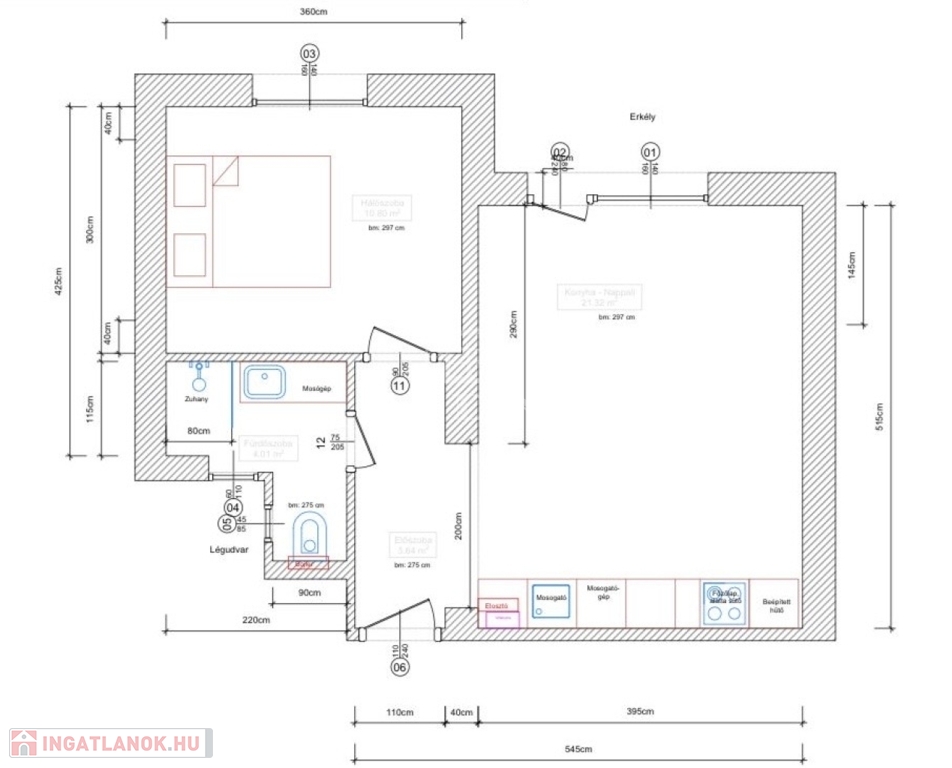 A lakás a harmadik emeleten helyezkedik el, és 38 négyzetméter alapterületű.