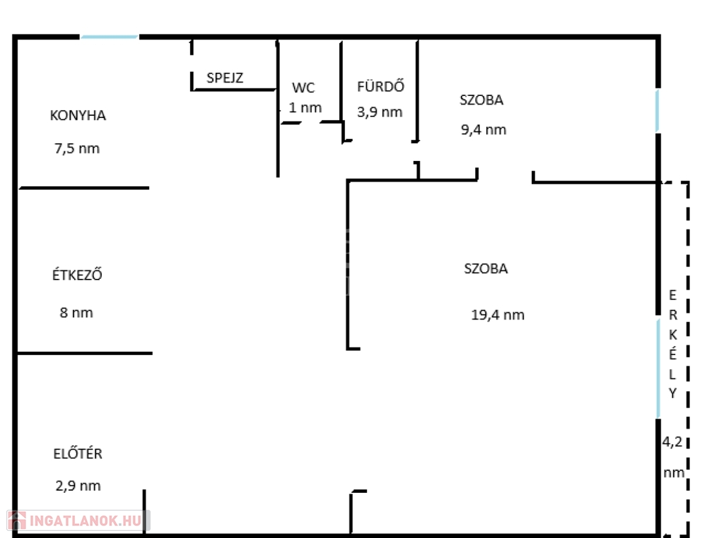 Praktikus elosztás külön nyíló szobák,valamint külön fürdőszoba és a wc.