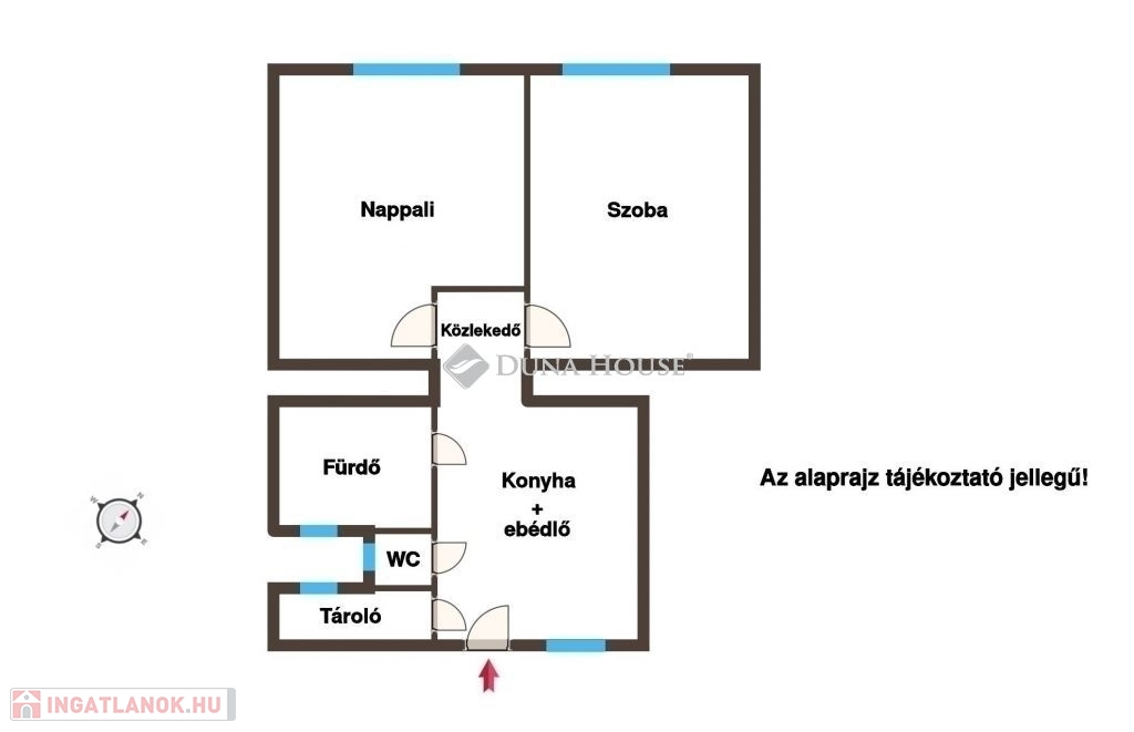 - 2 tágas, utcára néző szoba, ÉNy-i tájolással