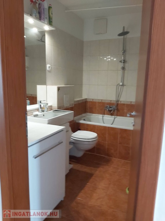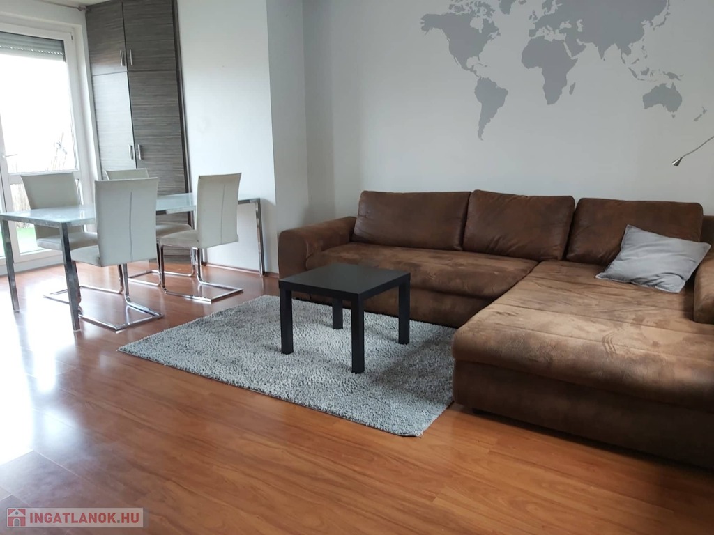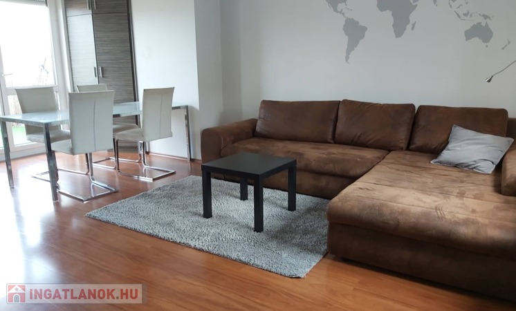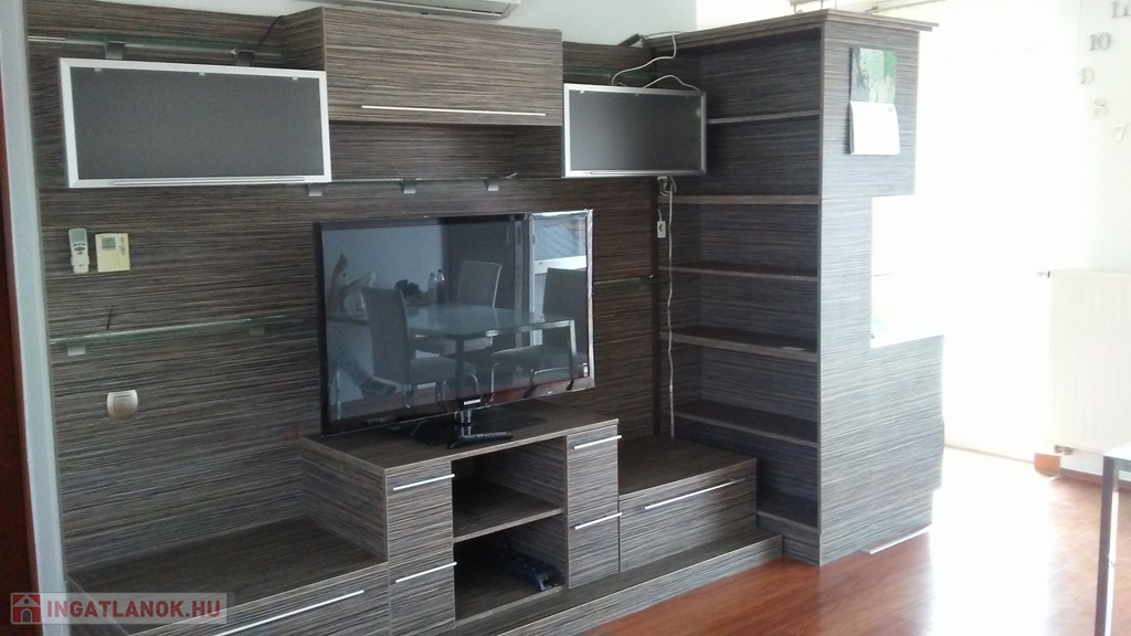 A lakás bútorozott és gépesített (mosógép, mosogatógép, sütő, főzőlap, hűtő, TV, klímaberendezés mindkét szobában).