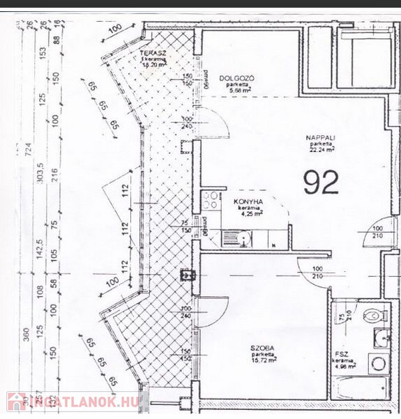A lakásnak kis előtere, tágas, világos amerikai konyhás nappalija és nagy hálószobája van. A fényes hálószoba , és a modern nappali-konyha is a lakás mellett végigfutó 18 m2-es teraszra nyílik, mely sok hangulatos beszélgetésnek és grillezésnek volt már eddig is idális helyszíne. A teraszon két napellenző biztosítja az árnyékolást. A nappalihoz egy igény esetén akár hálórésznek is leválasztható dolgozórész tartozik, ami a lakást ideálissá teszi a home-officehoz, a lakás nettó területe 52 m2.