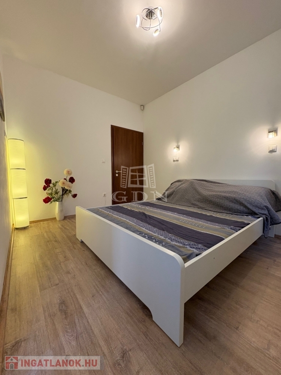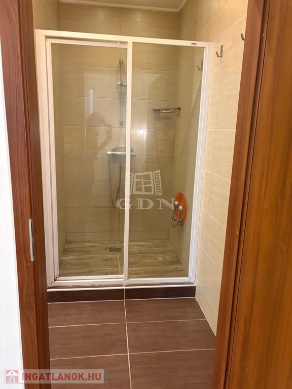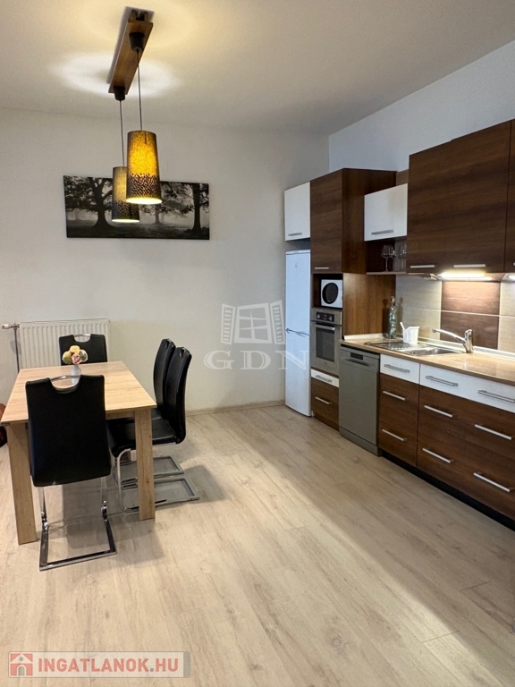 A nappali plusz hálószobás 66 nm alapterületű földszinti lakás fűtéséről házközponti kazán gondoskodik.