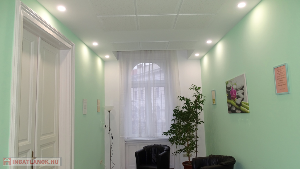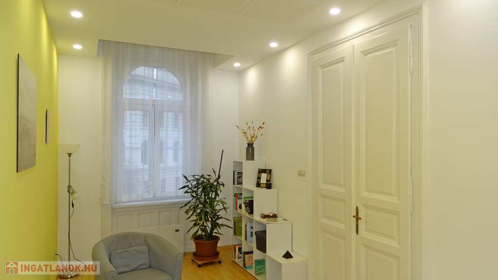A villanyhálózat, a burkolatok, a nyílászárók cserélve lettek. Álmennyezetbe szerelt világítás van az ingatlanba, így az eredeti 3.60m belmagasság 3 m-re csökkent. Ezzel a megoldással sokkal esztétikusabb lett ( szerelés tekintetében mindenképpen hasznos) és a fűtés-hűtés esetén kevesebb teret szükséges temperálni, amellett hogy a térérzet teljesen megmaradt.