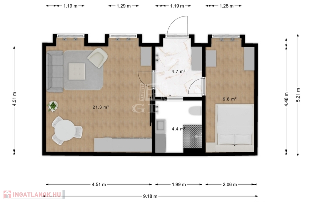 Az ingatlan 39 m²-es, kiváló elosztású, modern polgári lakás.