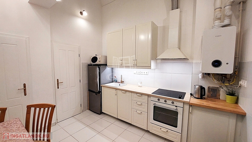 Az ingatlan csendes, belső udvarra néz, az ablakok előtt nincs átjárás, bejárata szeparált. Négy éve teljes körű felújításon esett át, a hátsó tűzfal és a padló alatti rész szigetelt, ez hozzájárul ahhoz, hogy télen kellemesen meleg, nyáron pedig klíma nélkül is hűvös maradjon.