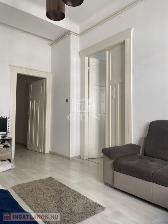 A 66 nm-es erkélyes lakás a liftes ház 1.emeletén található. Közepes állapotú, az utolsó felújítás 2019-ben volt. Belmagasság 3.49m, nem galériázott. A nyílászárók új,műanyagok. A fűtést és meleg vizet a gázcirkó szolgáltatja.