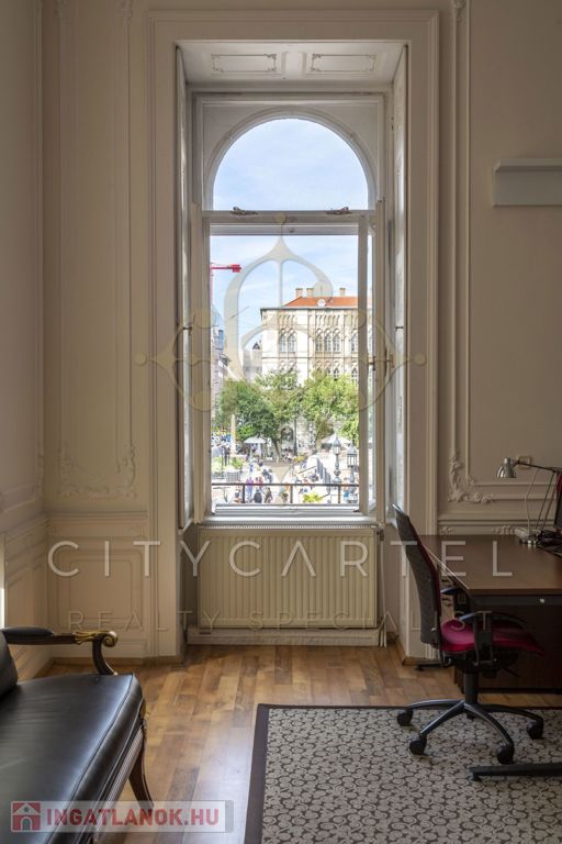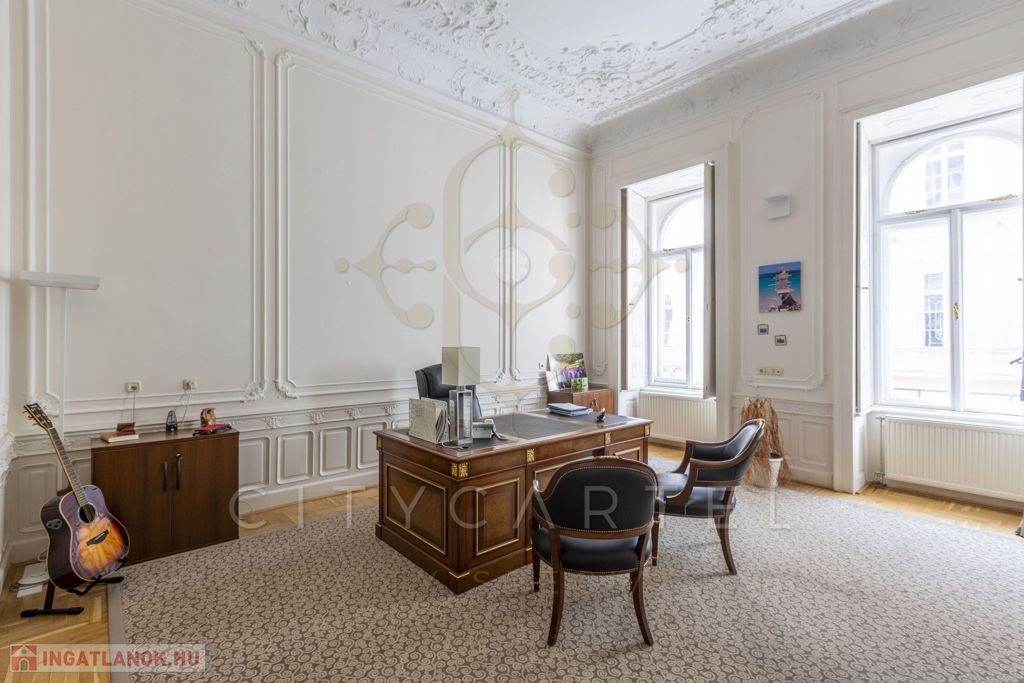 Az első emeleti, impozáns ingatlan rendkívül világos és tágas, kifinomult részletekkel díszített belső terekkel rendelkezik. Körbejárhatósága és két külön bejárata lehetőséget biztosít akár két szeparált iroda kialakítására is.