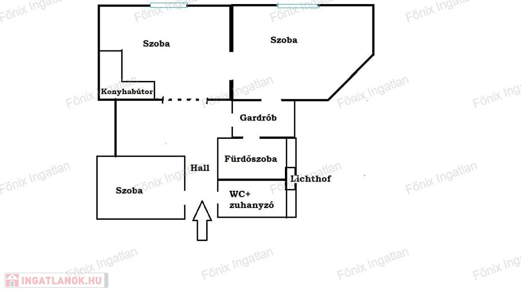 Jelenlegi elosztása: tágas előszoba,