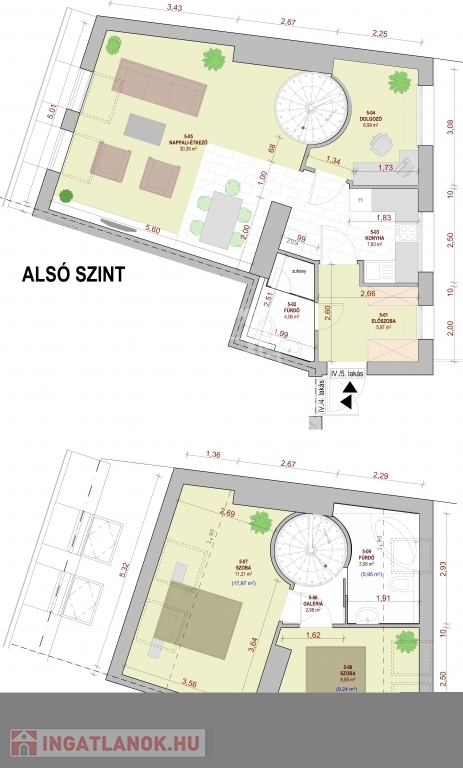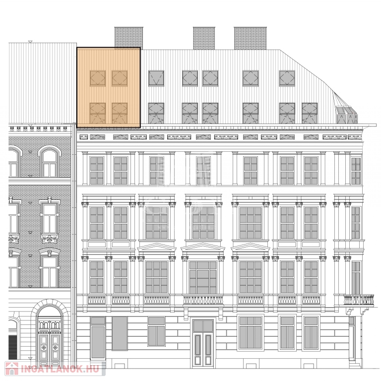 V. kerület Belvárosi részén, napfényes, magasemeleti luxus lakások kerülnek kialakításra a kivitelezéssel párhuzamosan pedig az épület korhűen megújul és egyidejűleg modern felvonó kerül beépítésre. Összesen 121m2 lakóterülettel rendelkezik ez a remek kéthálószobás, tetőteraszos ingatlan. A bejárati szinten a konyha, dolgozó és nappali mellett egy vizes helyiség kerül kialkaításra, a hálószobák az élettértől jól elszeparálva az emeleten kapnak helyet a mellékhelyiségekkel, innen jutunk fel a privát 30m2-es tetőteraszra mely kizárólag ennek a lakásnak a kényemét biztosítja. Az előrelátó tervezésnek köszönhetően nem lakószobából megközelíthető a tetőterasz így valóban szerves része lehet a lakásnak. A mellékelt látványtervek csupán egy, a számtalan megvalósítható lehetőség közül, jelen stádiumban még 100%-ban lehetséges a leendő tulajdonosok elképzeléseinek megvalósítása.