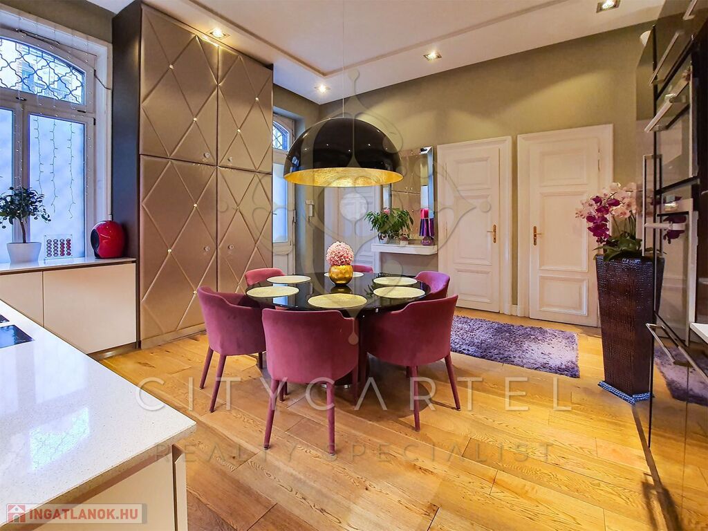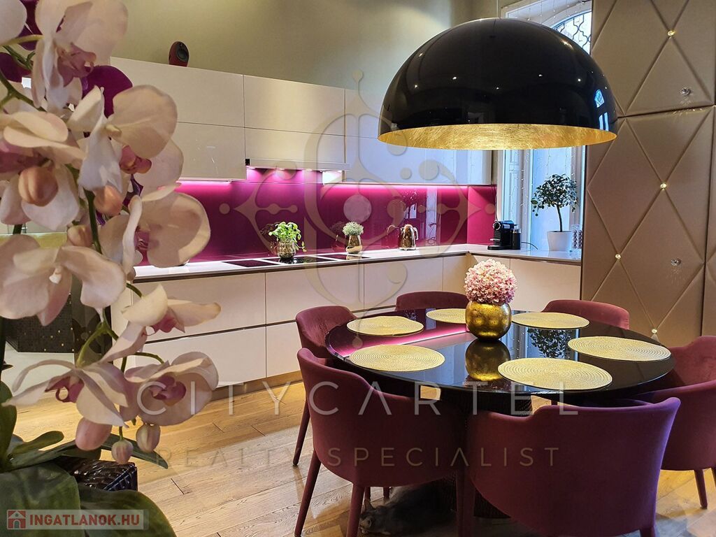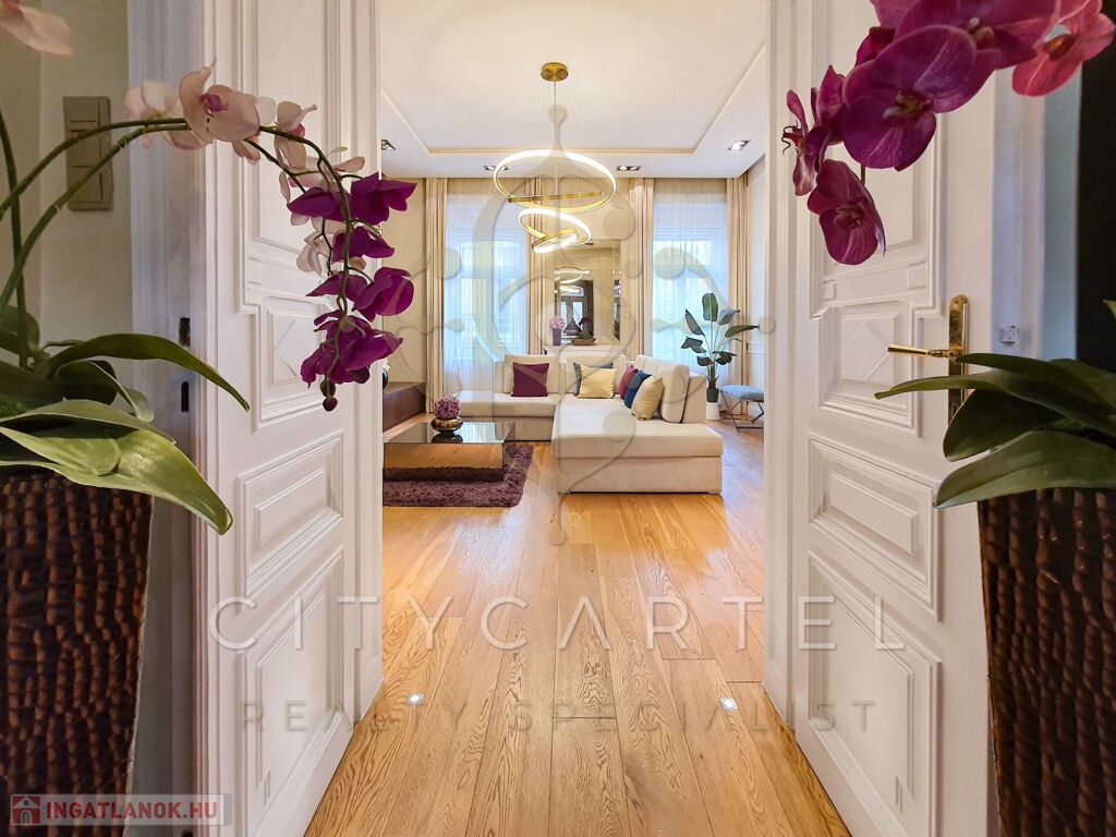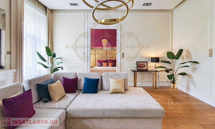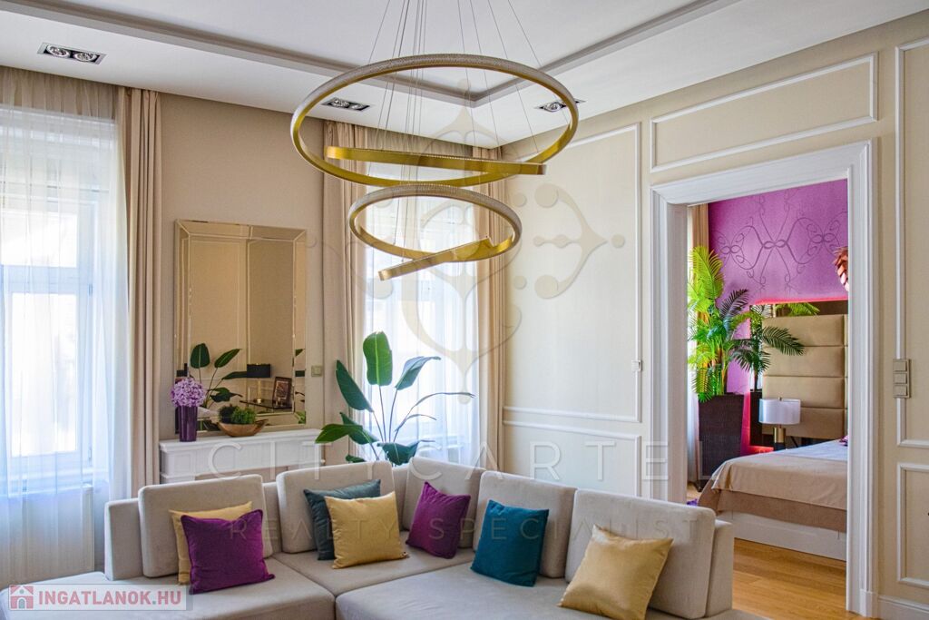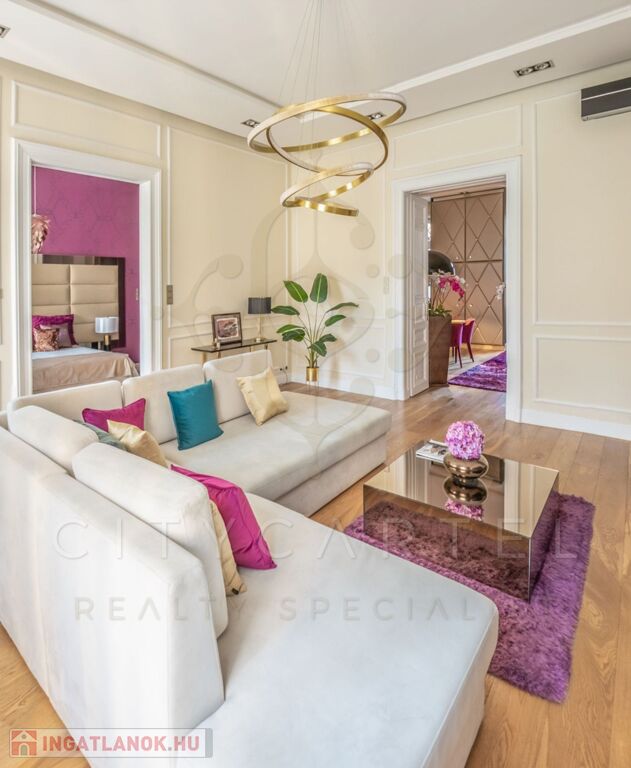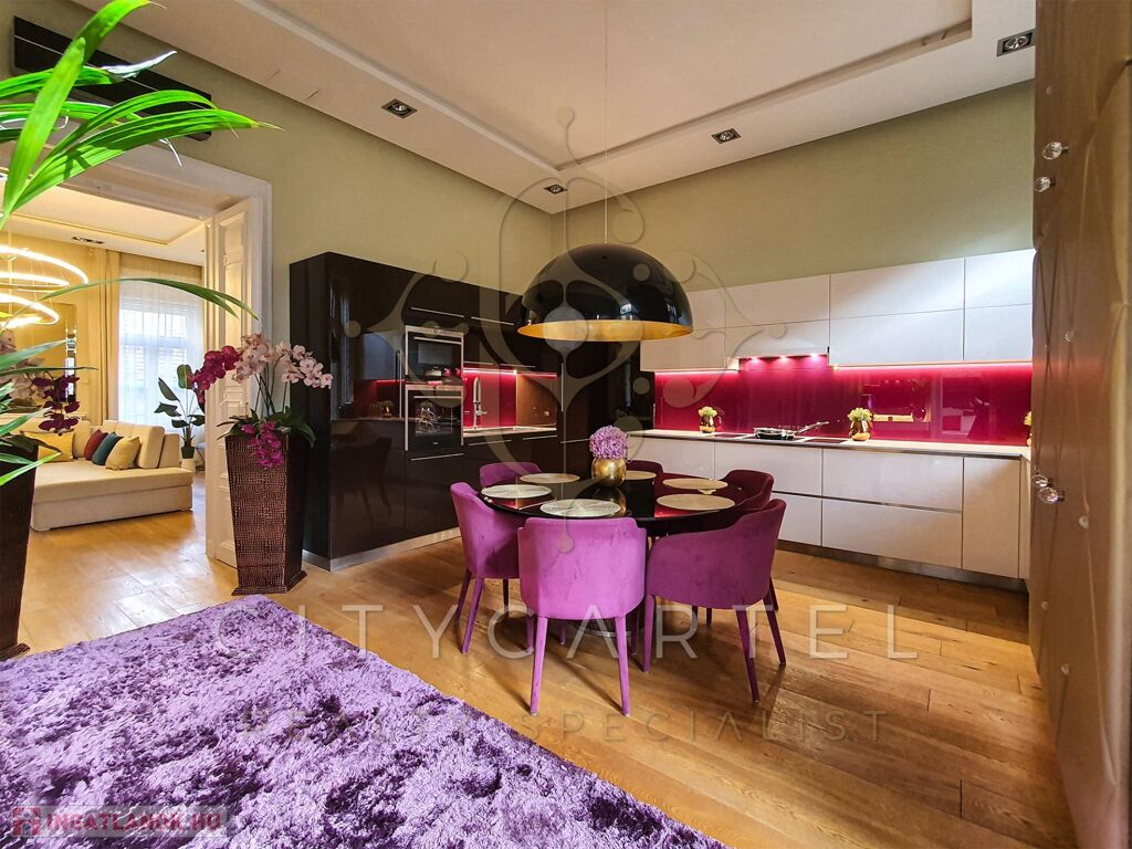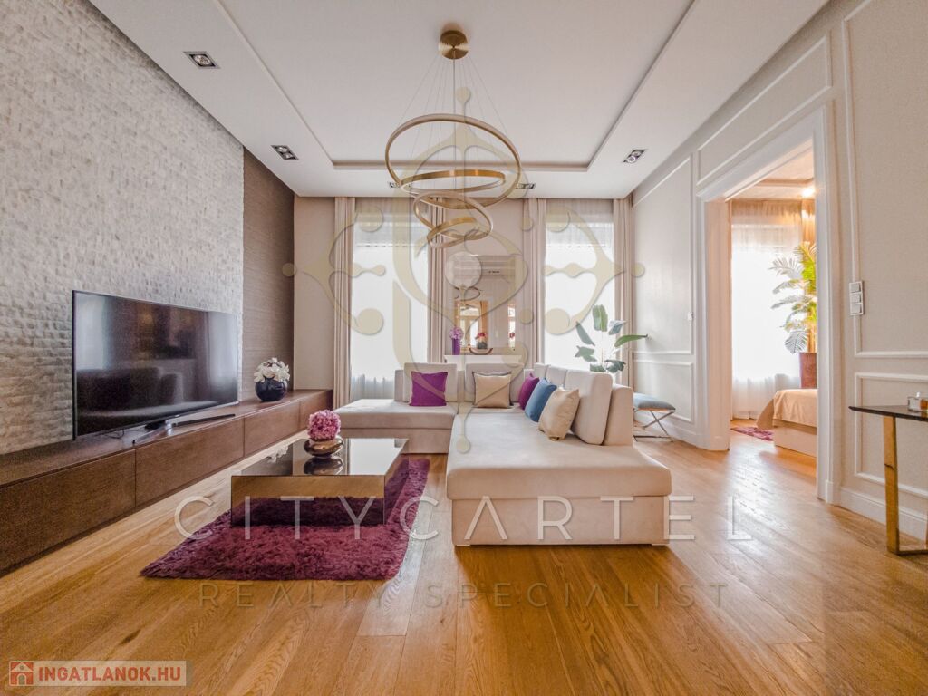Eklektikus bérház polgári stílusú társasházában rendezett, folyamatosan karbantartott, belsőleg igényesen renovált liftes ház 3. emeletén luxus minőségben teljesen felújított, bútorozott nagypolgári lakás, napfényes, tágas nappalival és terekkel.