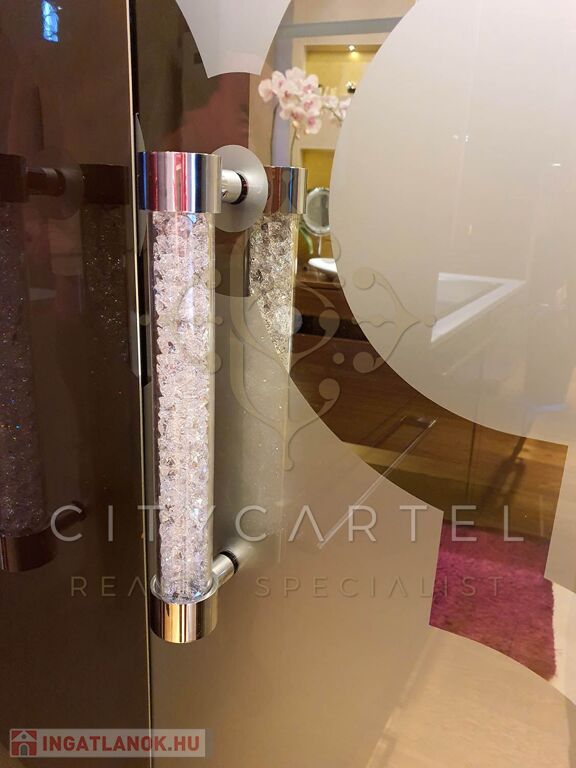 Egyedileg tervezett és gyártatott világítótestek, valamint eredeti ’Swarovski’ lámpatestek, ’Swarovski’ kilincsek a lakás részét képezik az összes berendezési tárggyal együtt!