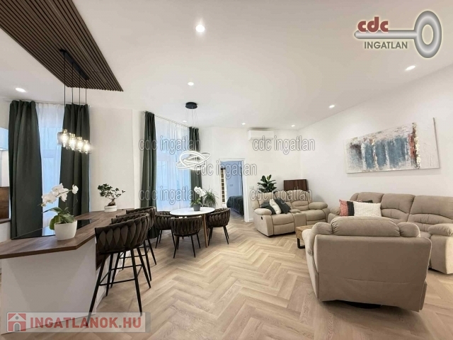 Eladó Budapest szívében egy exkluzív luxuslakás! Megvételre kínálunk a Belváros egyik legpatinásabb utcájában, az V. kerületi Papnövelde utcában egy teljes körűen, prémium minőségben felújított, 91 m²-es, 3 szobás, napfényes lakást. Az ingatlan III. emeleti, nagyon világos és csendes, amerikai konyhás nappali, tágas és elegáns tér + 2 külön nyíló szoba, gardróbszoba, 2 külön fürdőszoba a maximális kényelemért. Cirkófűtés, padlófűtés, komfort minden évszakban, elektromos redőny és szúnyogháló minden ablakon. A teljes körű felújítás során belsőépítész által megálmodott, egyedi enteriőr, prémium minőségű anyaghasználat, igényes kivitelezés. Rendezett, liftes társasház, kulturált lakóközösséggel. Üveg érintős kapcsolók, okosotthonnal felszerelt wifin keresztül irányítható fények, a szobákban Polár hűtő-fűtő wifi-s klíma, Mosókonyha gépesített: Bosch mosógép és szárító, asztalos által készített minőségi egyedi beépített szekrények és konyhabútor, Bosch hűtő, mosogatógép, sütő és mikró, Klarstein főzőlap és szagelszívó. Minőségi szaniterek, UV és hő ellen felfóliázott, 3 rétegű ablakok, amelyek privát szférát biztosítanak a tükör hatásnak köszönhetően. A lakás ideális választás mindazoknak, akik nem szeretnének kompromisszumot kötni: elegancia, modern kényelem és nagypolgári enteriőr, belvárosi életstílus egy helyen. Irányár: 269.000.000 Ft. Ez a lakás nem csupán otthon, hanem életstílus is! Ne hagyja ki ezt a ritka lehetőség egy ilyen színvonalú ingatlanra Budapest történelmi belvárosában!